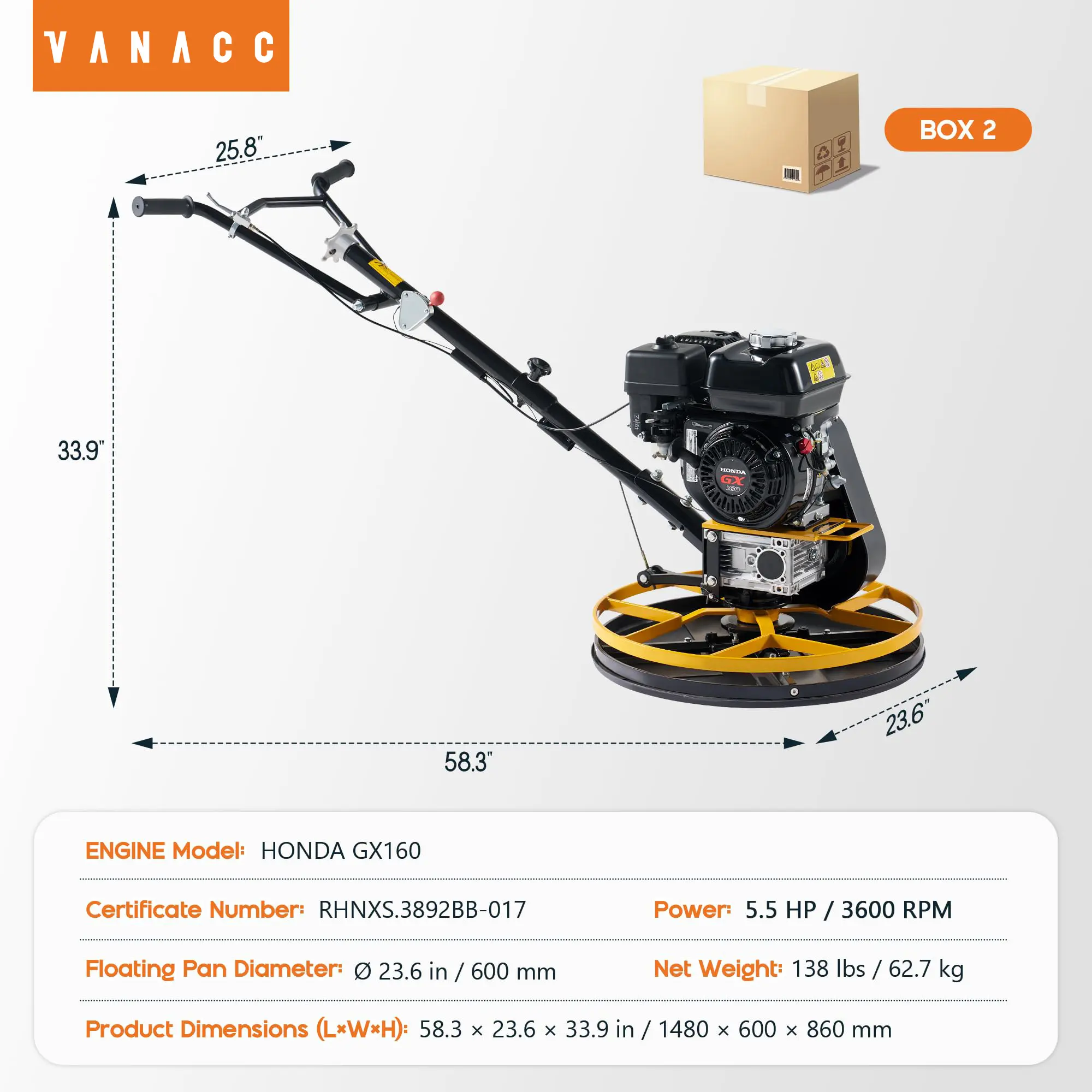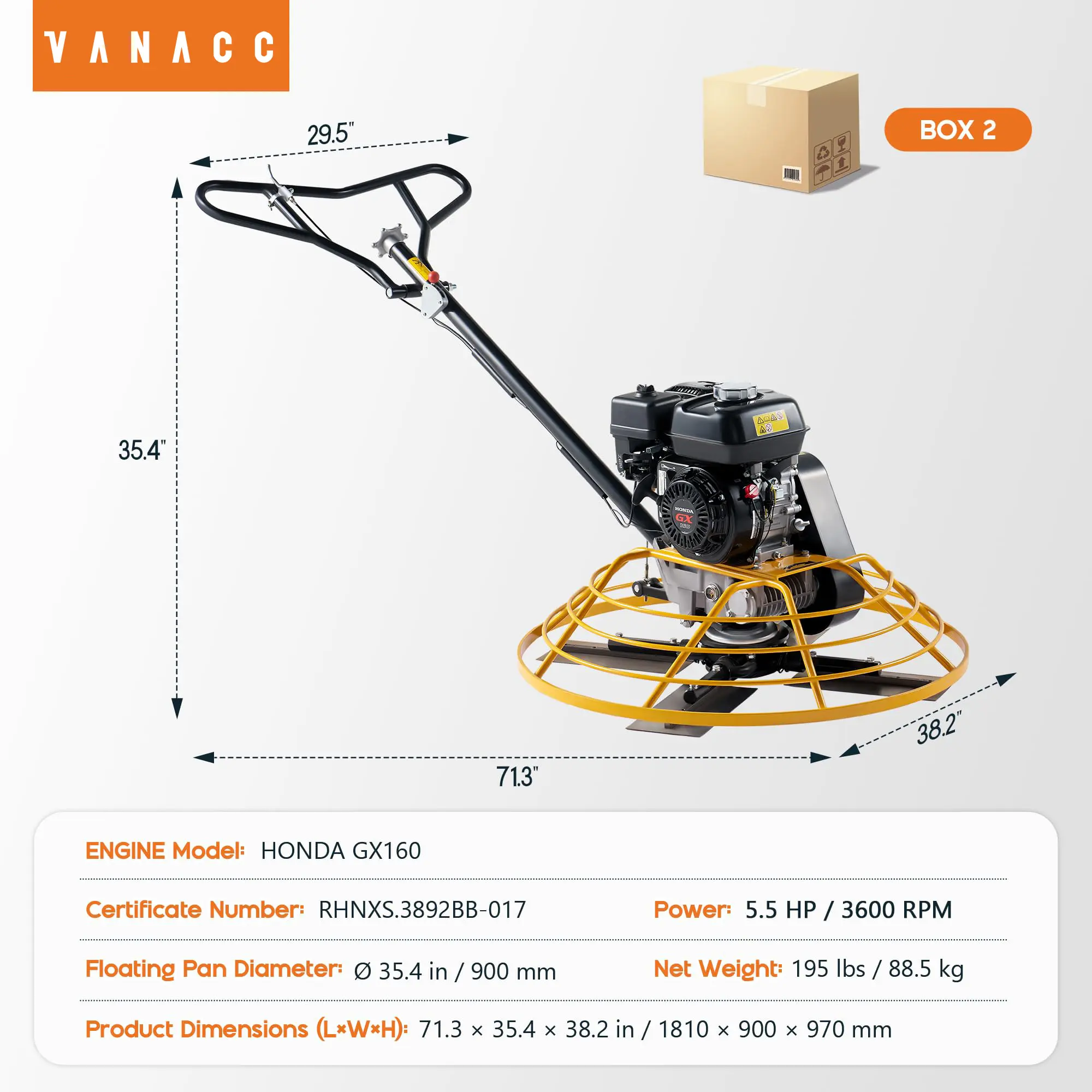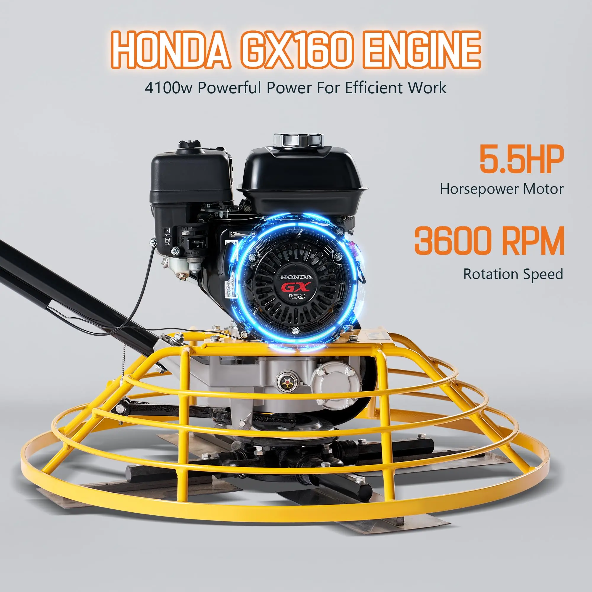 ·HONDA GX160 ENGINE: Powered by a high-performance 5.5HP Honda gasoline engine, providing reliable and efficient power for achieving smooth concrete finishes