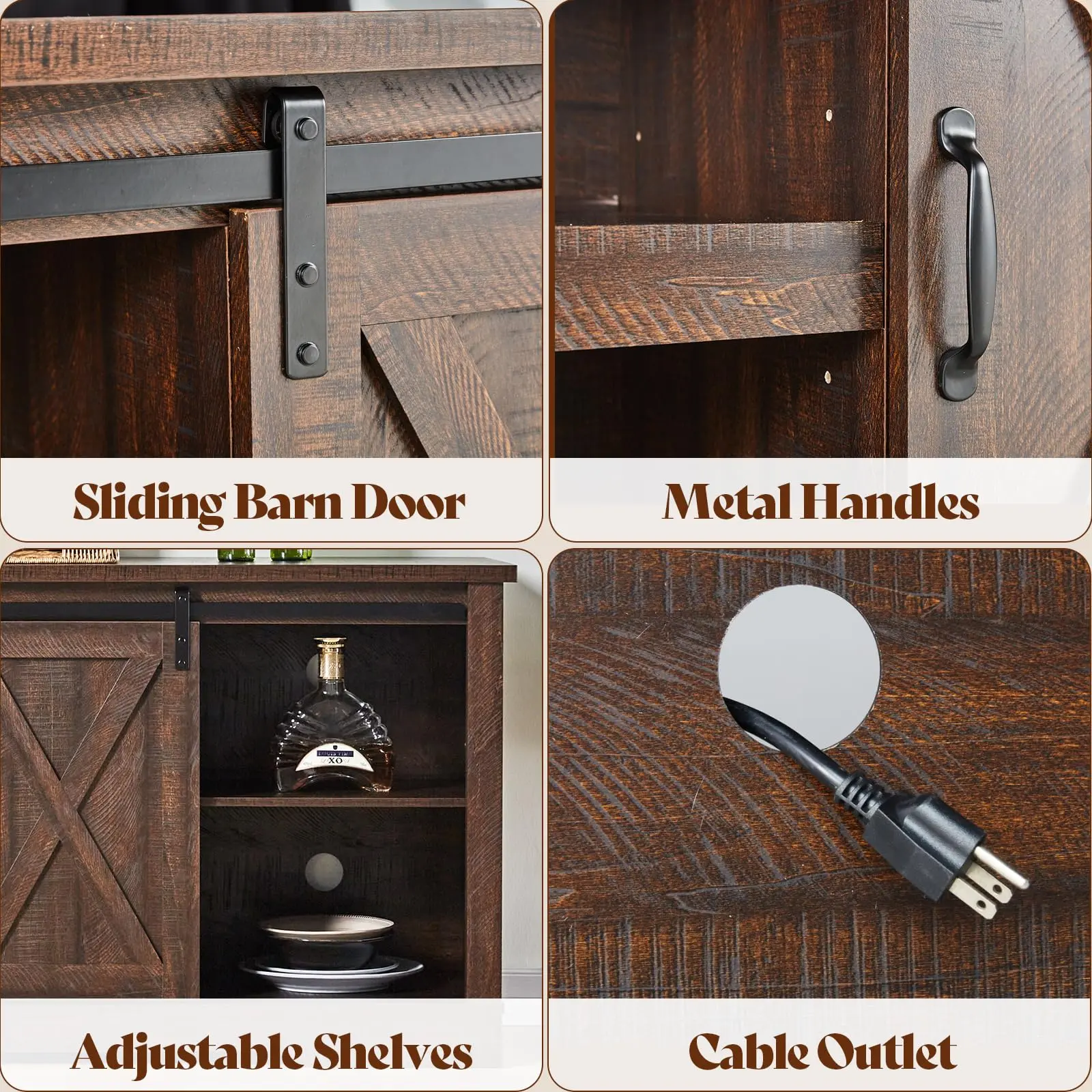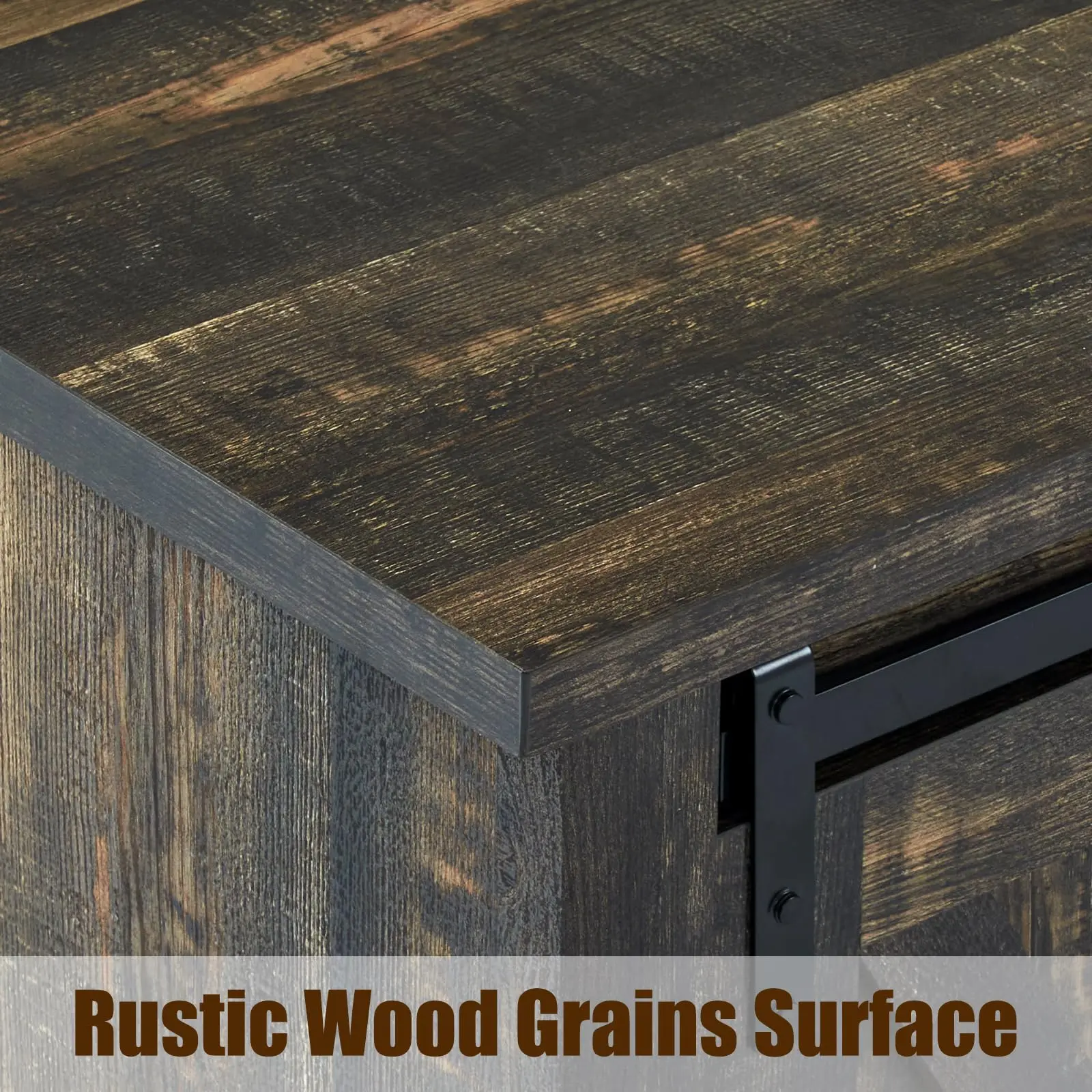 ·【Convenient Sliding Doors】Sliding barn door makes it easy to access the cabinets and shelves while adding a touch of vintage charm and quality metal rail ensures smooth and noiseless movement.