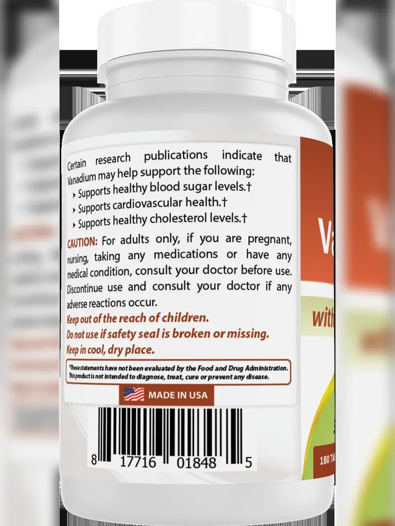·PREMIUM FORMULA - Our Vanadium Tablets are the made with high quality Vanadium sulfate & Chromium Polynicotinate