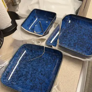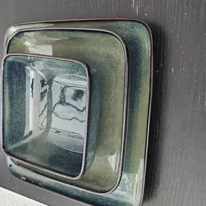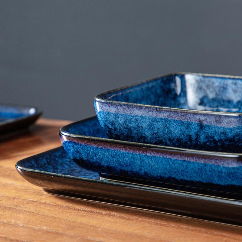 The square modern design with elegant blue finish makes a nice addition to existing dinnerware pieces; The elegant square shape allows neat storage. the blue glaze made by high-temperature secondary firing is not only vibrant and vivid but also prevent staining and fading over time.
