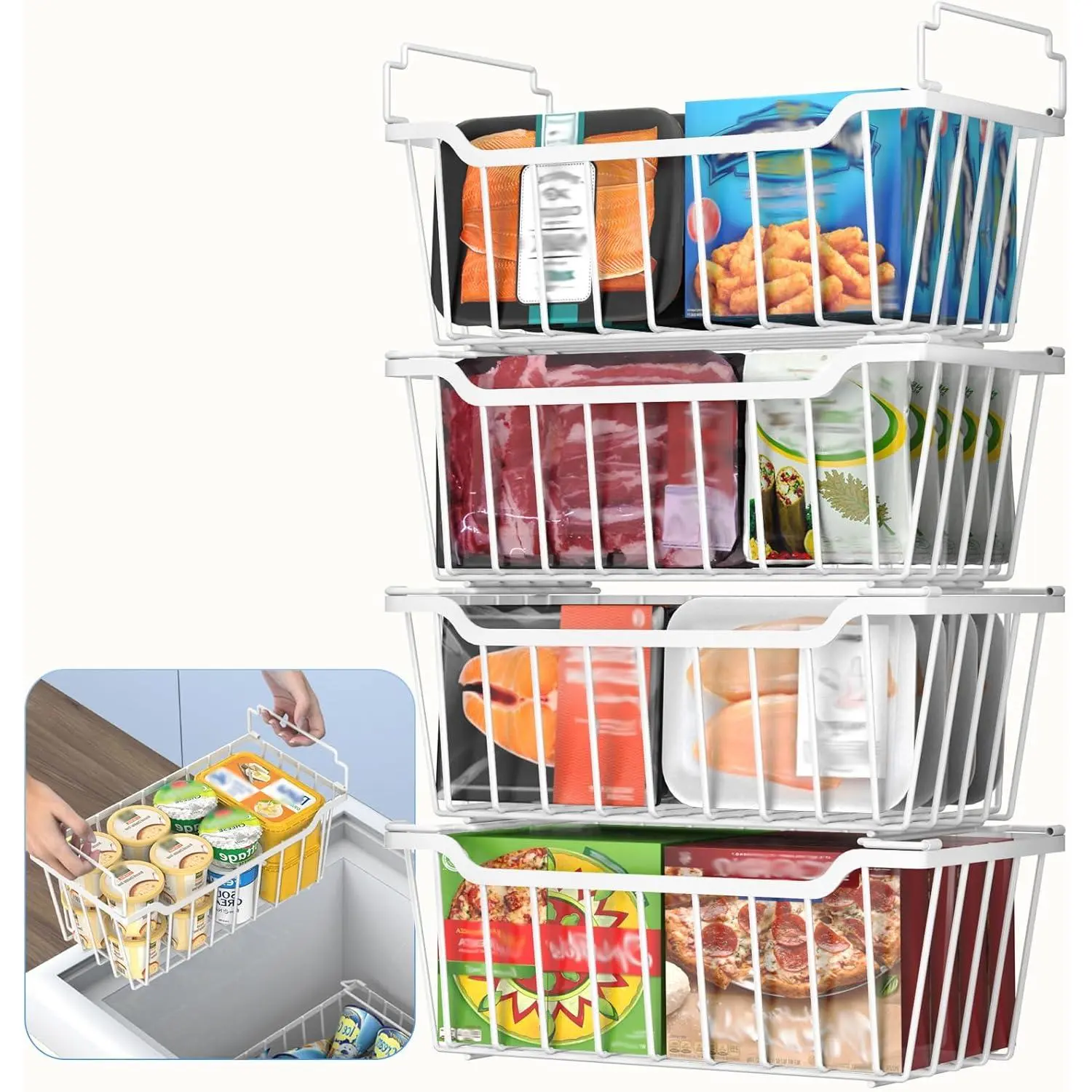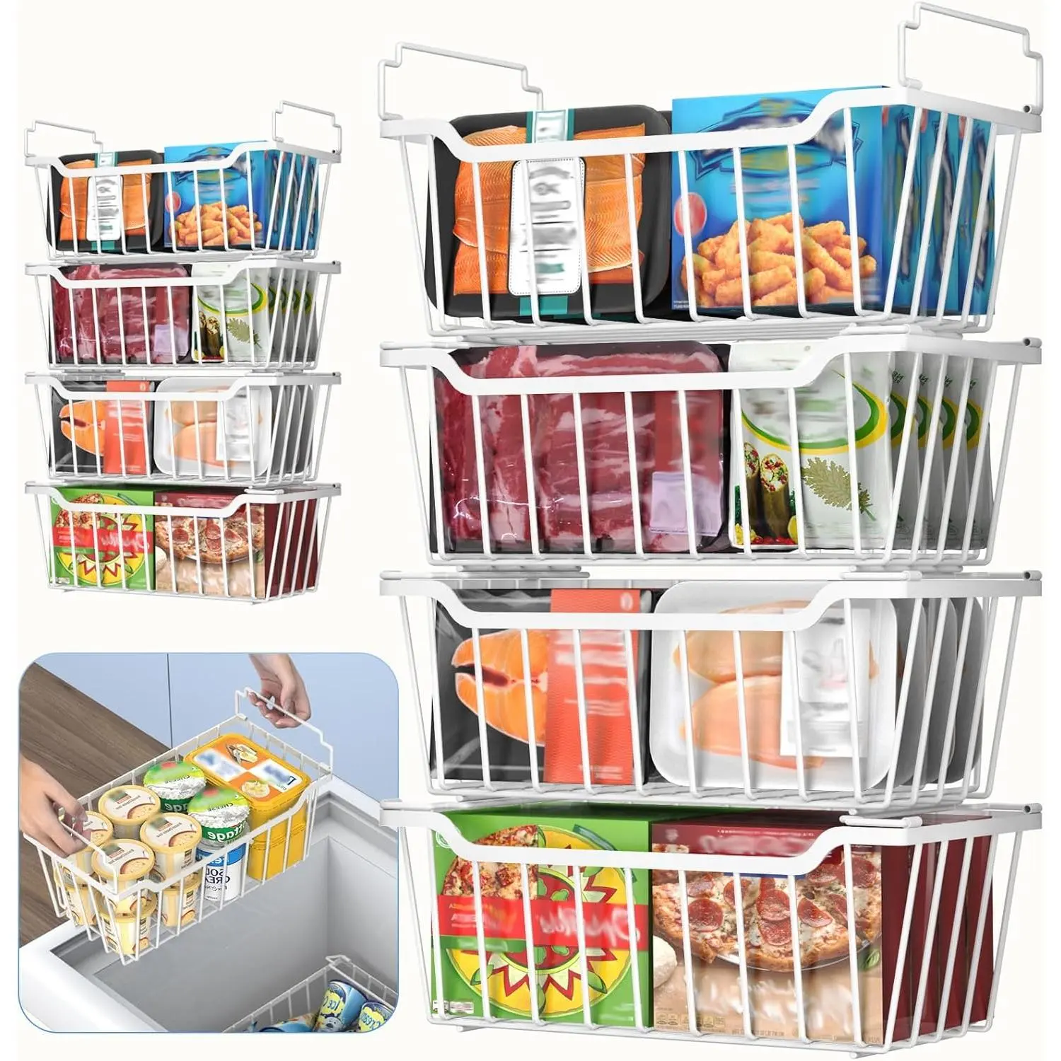 Organizer Bins with Foldable Handle, Stackable Freezer Baskets for 3.5-7 Cu.FT Deep Chest Freezer #Organization, Coated #Metal Freezer #Storage Bins with Better Space Utilization #multifuncion #hogar