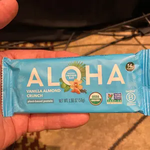 I spent a long time reading through bar nutrition labels while researching protein bars. My main criteria were to find bars with high protein and low sugar without fake sugar or sugar alcohols. With most bars at 5g of sugar or less, Aloha wins out by far, and the vanilla crunch is their best, at 3g. The raspberry white chocolate also 3g of sugar but I haven’t been able to try that yet. Other brands may have up to 20g of protein but that comes with either fake sugar or high real sugar, and 14g of protein is still solid. Despite the low sugar, the vanilla flavor is very good, and the crunchy texture is nice too. The bar consistency is in between the old Power Bars that you could beat up and bend and the Clif bars that crumble away to nothing, leaving a bar that can take a little bit of a beating in the bottom of your pack and still satisfy. I eat the vanilla crunch bars after most work outs, and mix in some of the oatmeal chocolate chip occasionally. I can’t wait to try the new banana bread flavor!