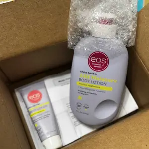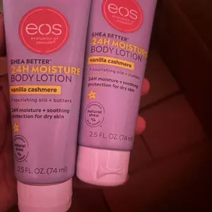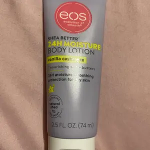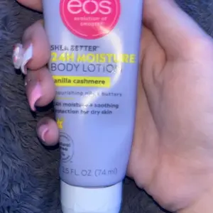At first, it smells like the big bottle of the EOS vanilla cashmere but after a few minutes, it smells like cardboard😂 but is moisturizing ig