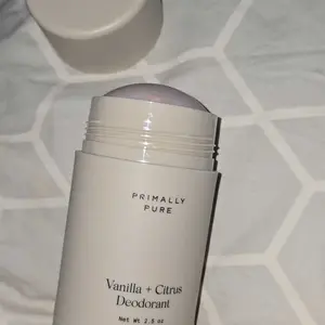 Arrowroot Powder*, Coconut Oil*⁺, Baking Soda, Tallow from Grass-Fed Cows*, Beeswax*, Non-nano Zinc Oxide, Essential Oils of Orange^, Vanilla*, and Sandalwood, Kaolin Clay, Rosemary Extract*, Non-GMO Vitamin E