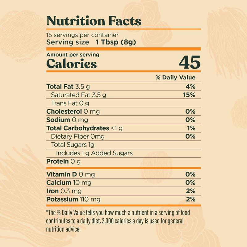 ·Organic coconut milk powder – A creamy, milky element, and for this blend all you have to do is add water to make the coconut-based creamy latte of your dreams, no dairy is needed.