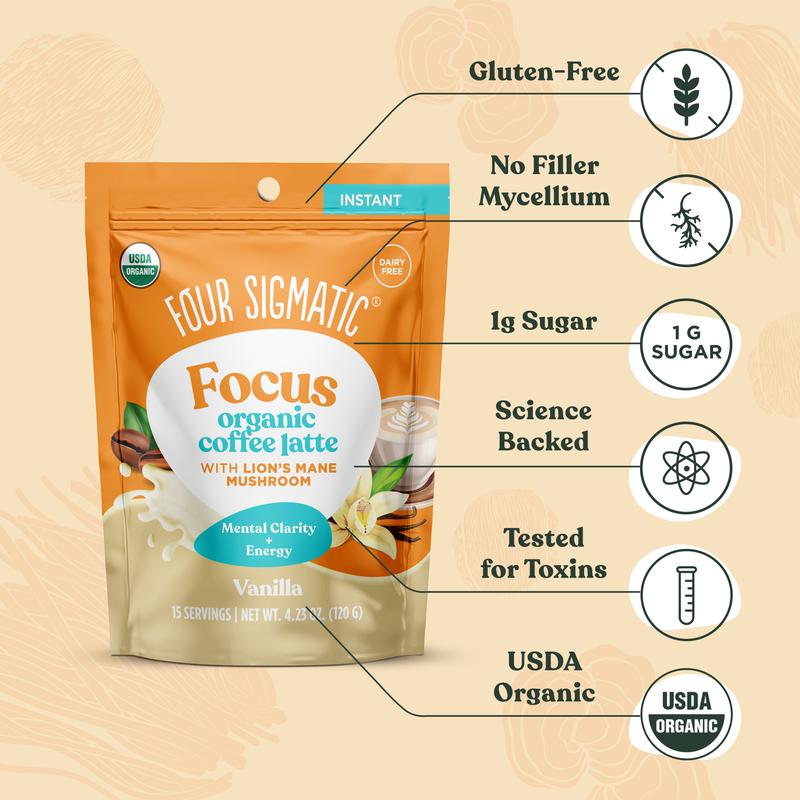 Indulge in a creamy, vanilla coconut milk latte infused with focus-enhancing lion’s mane mushroom – in an instant. Only 1g of sugar.