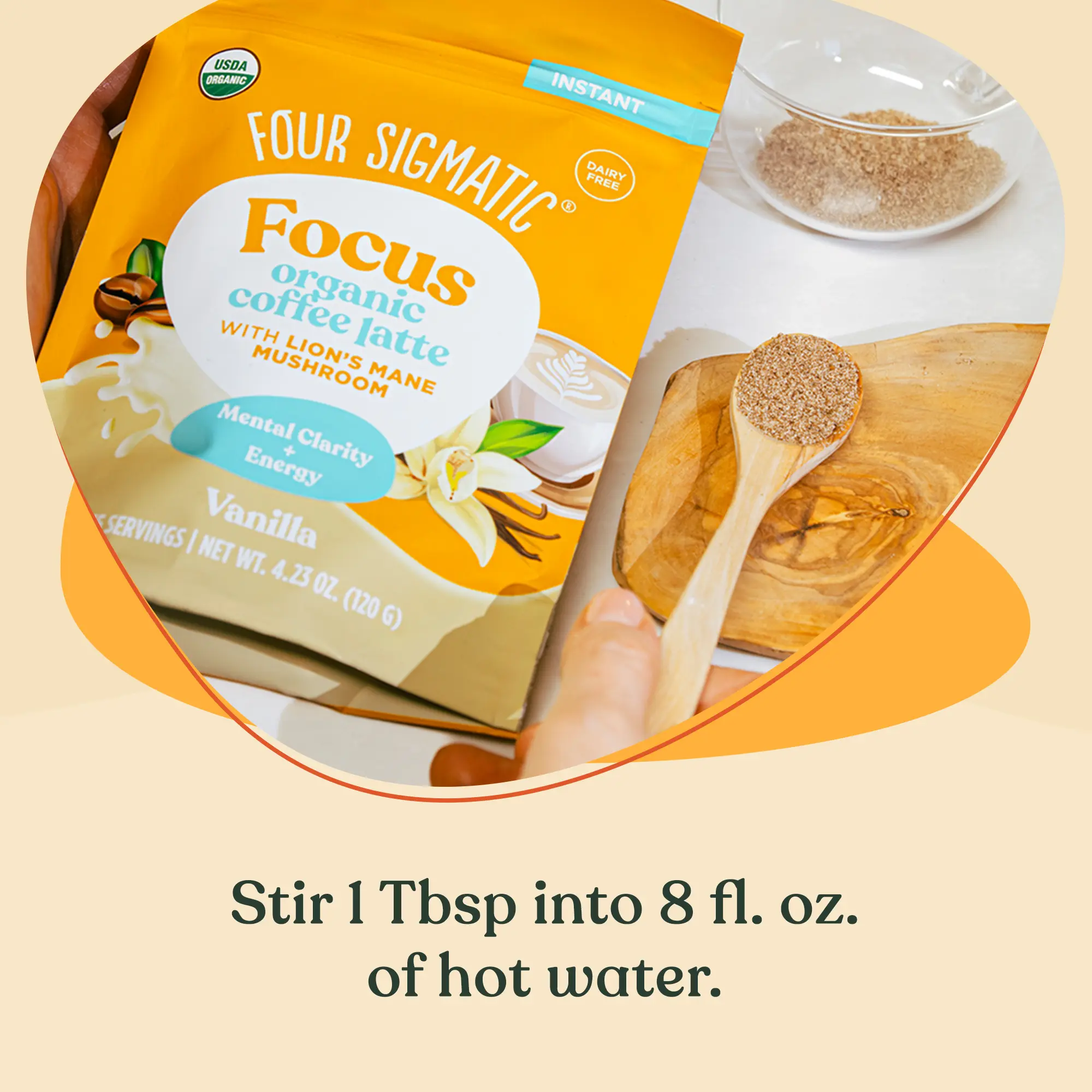 Stir 1 Tbsp into 8 fl. oz. of hot water. Enjoy a smooth and creamy vanilla coffee latte.