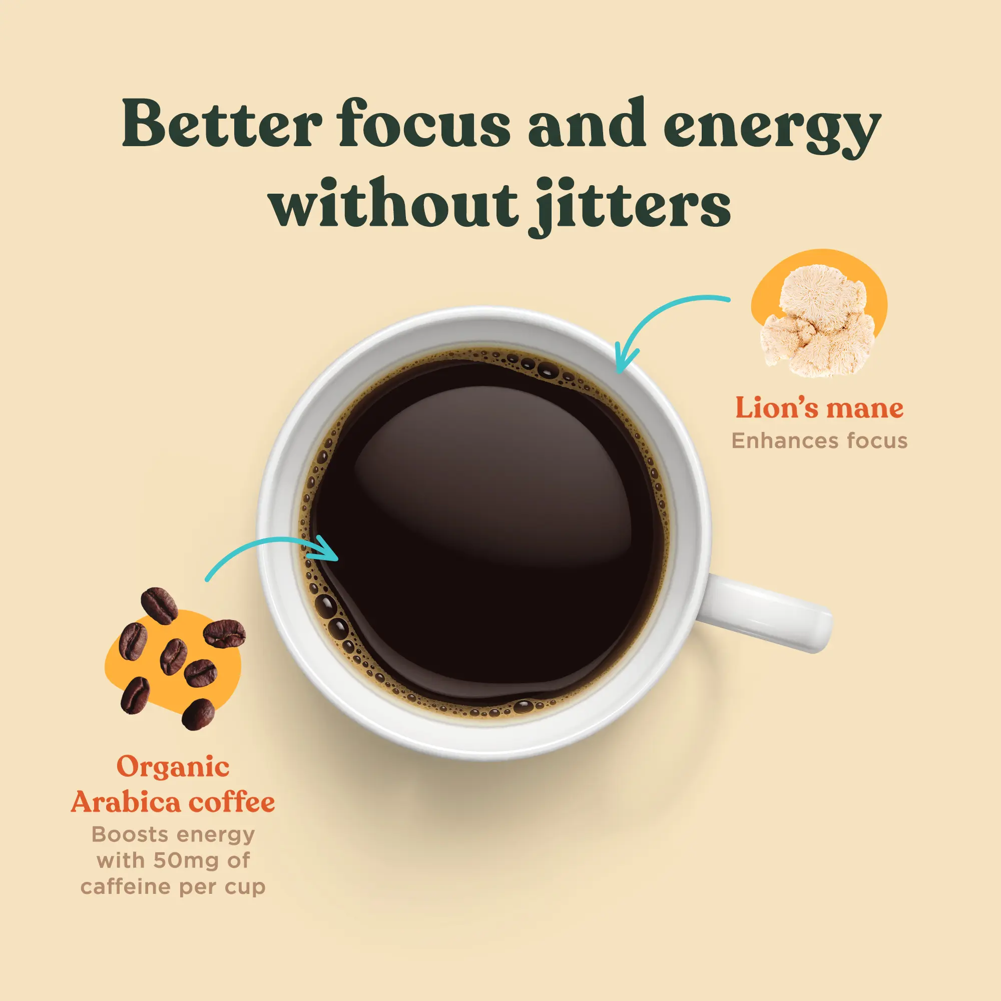 ·Enhanced Focus – Clear brain fog fast with the #1 mushroom coffee. Organic coffee and lion’s mane mushrooms boost focus and mental clarity in every sip.