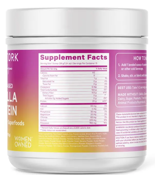 Our Vanilla Protein features 11g of fiber per serving. It combines a superfoods blend of spirulina, kale, spinach, and more. These support digestion, immune health, and overall wellness. Power your workout or increase your protein intake with this versatile supplement.