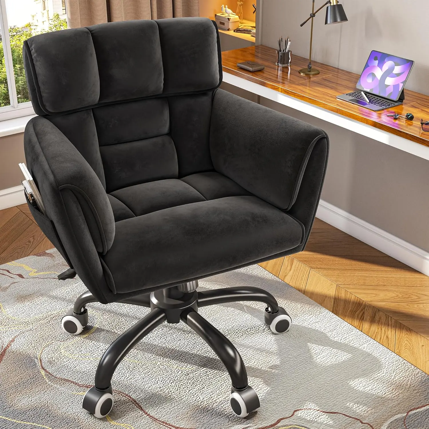 ·【Smooth Mobility】 Equipped with ultra-smooth 360° caster wheels, this chair for vanity with wheels glides effortlessly across hardwood floors, carpets, or studio spaces. Enjoy silent, noise-free movement for quick repositioning, adapting to dynamic tasks or creative flow without disrupting your environment.