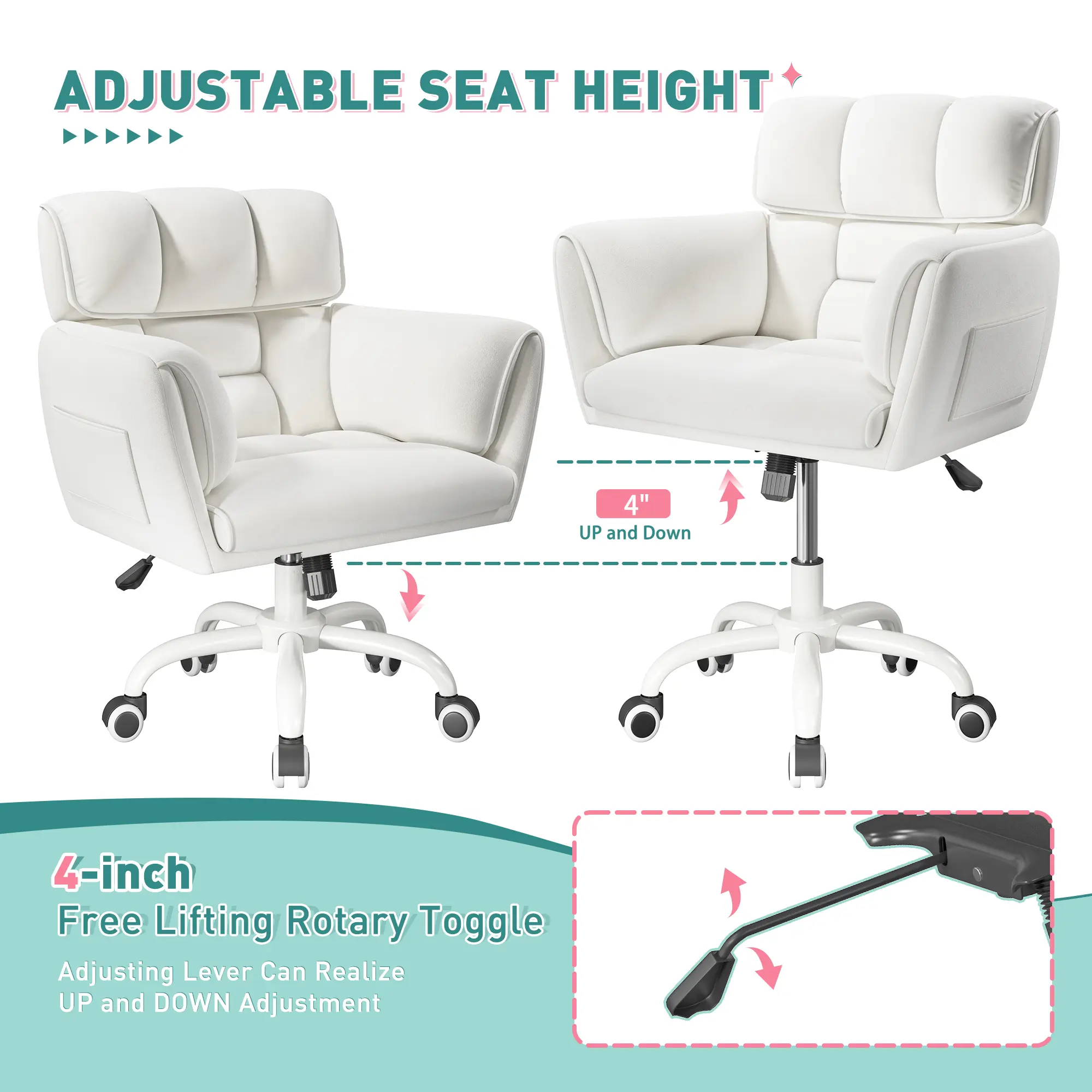 ·【Flexible Adjustment】 This vanity chair with back features dual customization—height adjustment and reclining backrest—to adapt to your body shape or preferences. Engineered with ergonomic precision, it ensures optimal posture for extended sitting, whether at your vanity, desk, or creative workstation.
