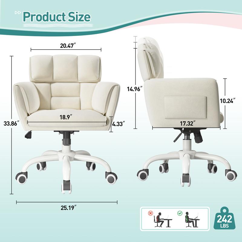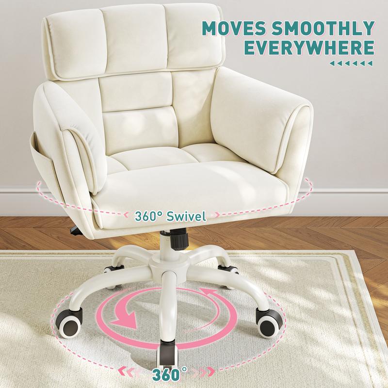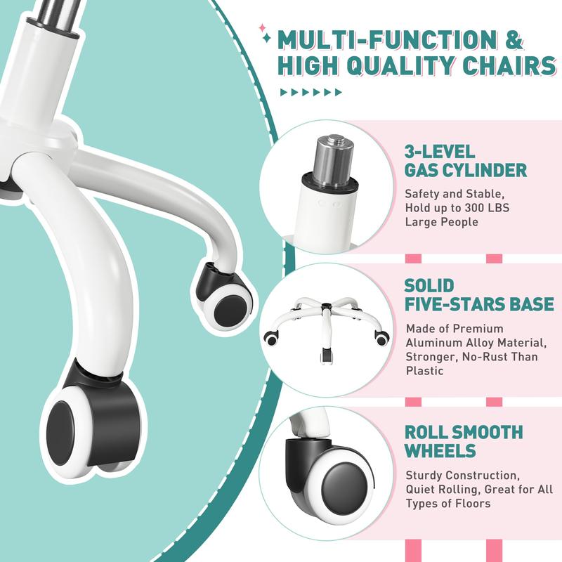 ·360°Swivel Desk Chair-The base and wheels of the cute chair can rotate 360 degrees,our universal wheels not only run smoothly,but also won't scratch the floor,allowing you to quickly move to wherever you want without hassle.