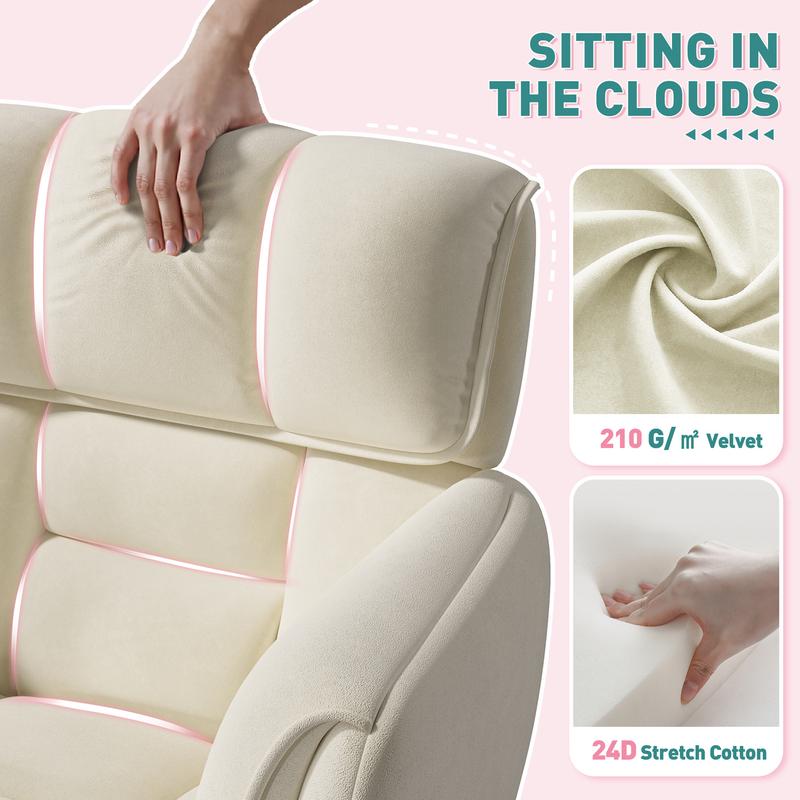 ·Comfortable Design-The surface of our office chair is covered with high-quality velvet,which is not only easy to maintain,but also won't pilling. More importantly,the backrest and seat cushion are filled with high-density foam,which provides good support and is not easy to deform after sitting for a long time.