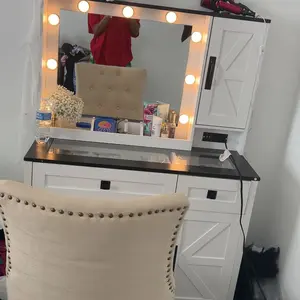 [Convenient Charging Station]: Outfitted with 2 AC outlets and 2 USB ports, which is very convenient for connecting hair dryers, curling irons, or other beauty equipment, and can also charge your mobile phone/iPad/smartwatch. This charging venity desk allows you to learn beauty makeup or live broadcast at any time