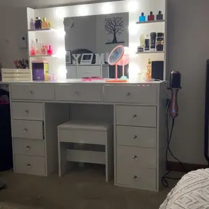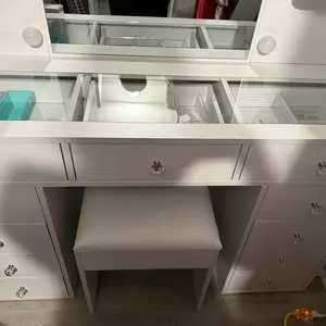 Storage Capacity: Are you still worried about a lot of cosmetics? The vanity desk does it all! 11 large makeup metal sliding drawers make your makeup environment well-organized. It can hold all your cosmetics perfectly! The bigger surprise is, this vanity table can make your bedroom look very neat and elegant.