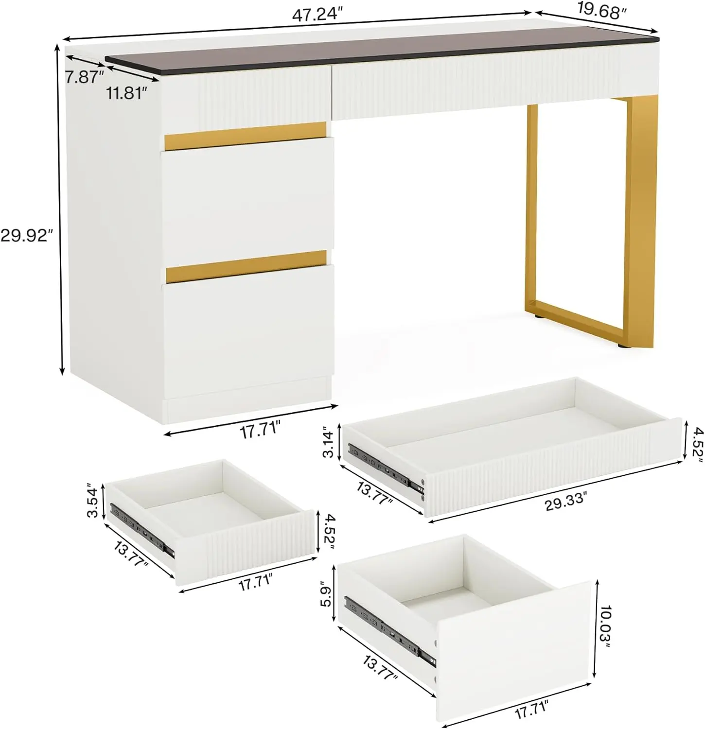 1. Powerful Storage: The vanity measures 47.24" W x 19.68" D x 29.92" H and features 4 large drawers, providing ample storage space for beauty essentials.