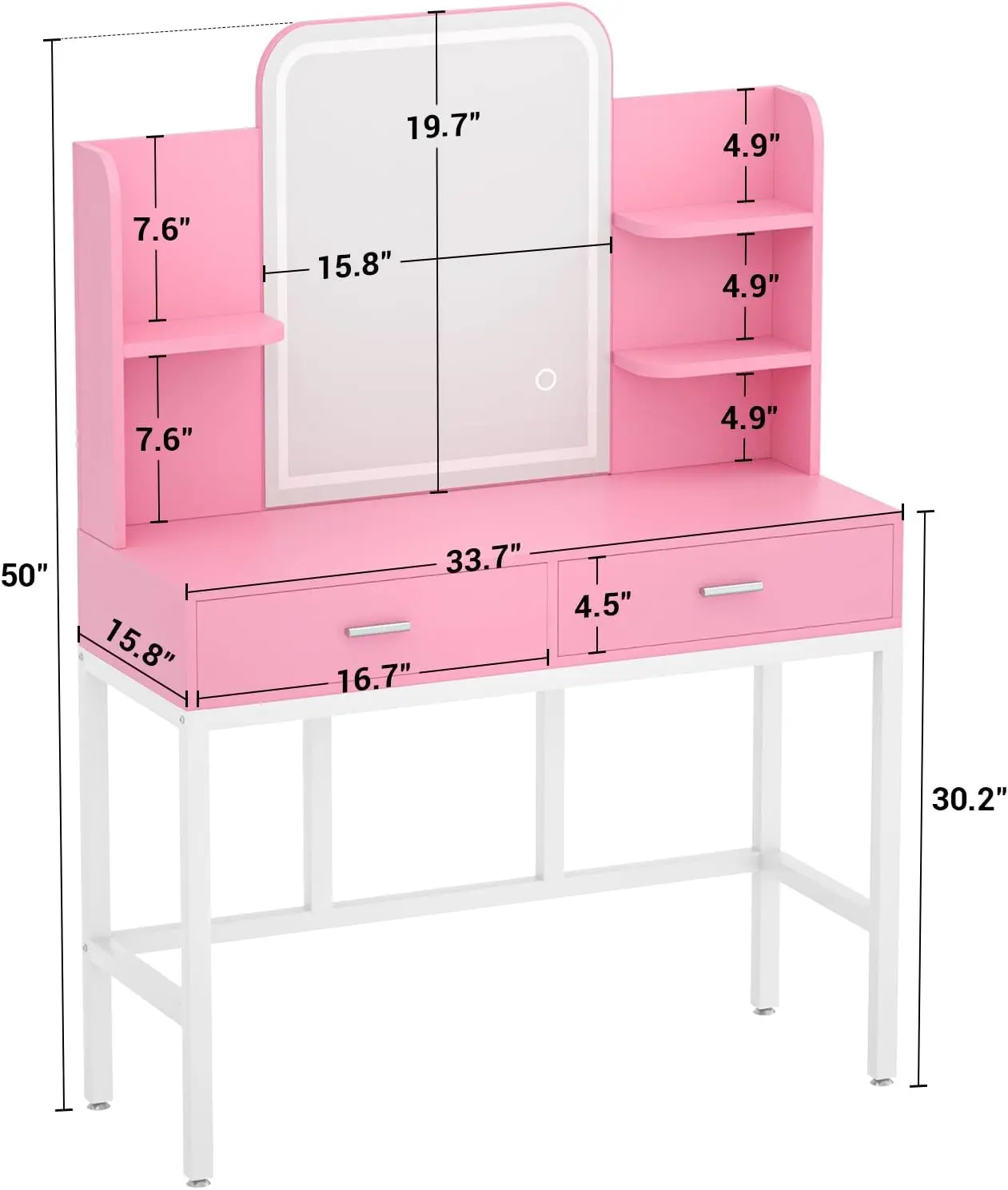 Ā·Ample storage space: This makeup table comes with two large drawers and five open storage shelves on the desktop, providing ample space for your beauty blender, makeup brushes, skincare products, and cosmetics. Keep your items organized and your room tidy.