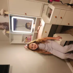 ·Large mirror with built-in LED light strip, which is more safe and beautiful than common bulbs.