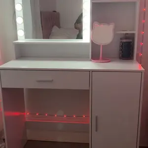 ·Spacious Storage: This dressing table set includes one oversized drawer, three shelves, and three levels of cabinets. All your makeup and skincare products can be neatly organized on the dresser, bidding farewell to small, cluttered desks and enhancing your daily life.