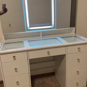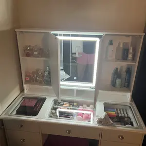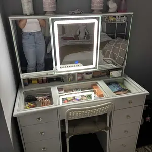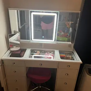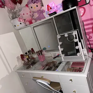 El vanity me encantó 🩷🩷🩷 llegó muy rápido me enamoré tiene mucho espacio 9 cajones manijas de lujo con luces wow!! Desde que llegó no paro de adorarlo se arma entre dos personas fácil de armar !!! 👍👍👍👍 cómpralo esta a buen precio ve a mi carrito naranja jejej byeeeeee!!!!!