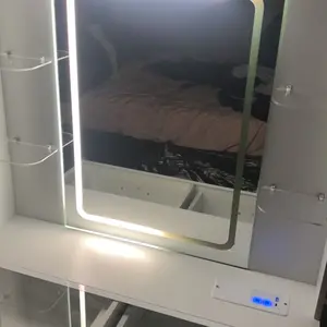 ·Wireless Charging&Safety Sation: Makeup vanity desk with lights with built-in wireless charging area for easy wireless expansion of devices, and a safety sation that combines convenience and safety, A vanity desk with mirror lights that combines convenience and safety