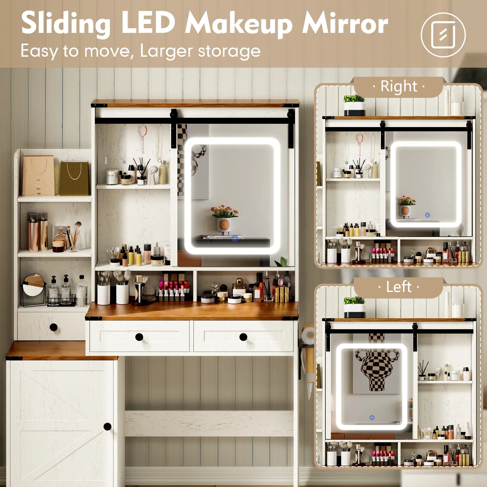 ·Ample Storage Space: This vanity features 6 drawers and 4 cabinets, each with adjustable shelves, providing plenty of space to store all your beauty essentials. The open shelf on top is perfect for displaying or storing products of various sizes.