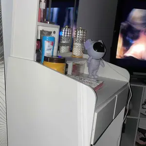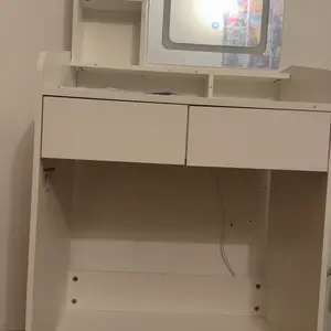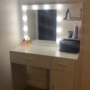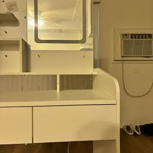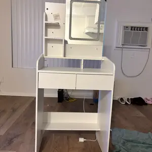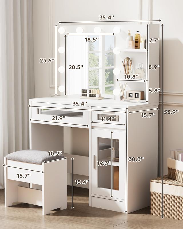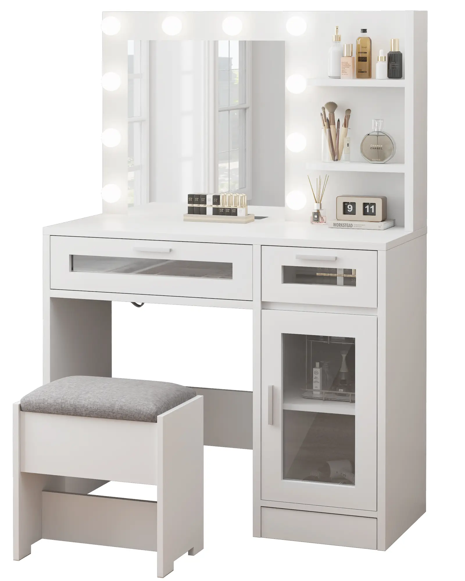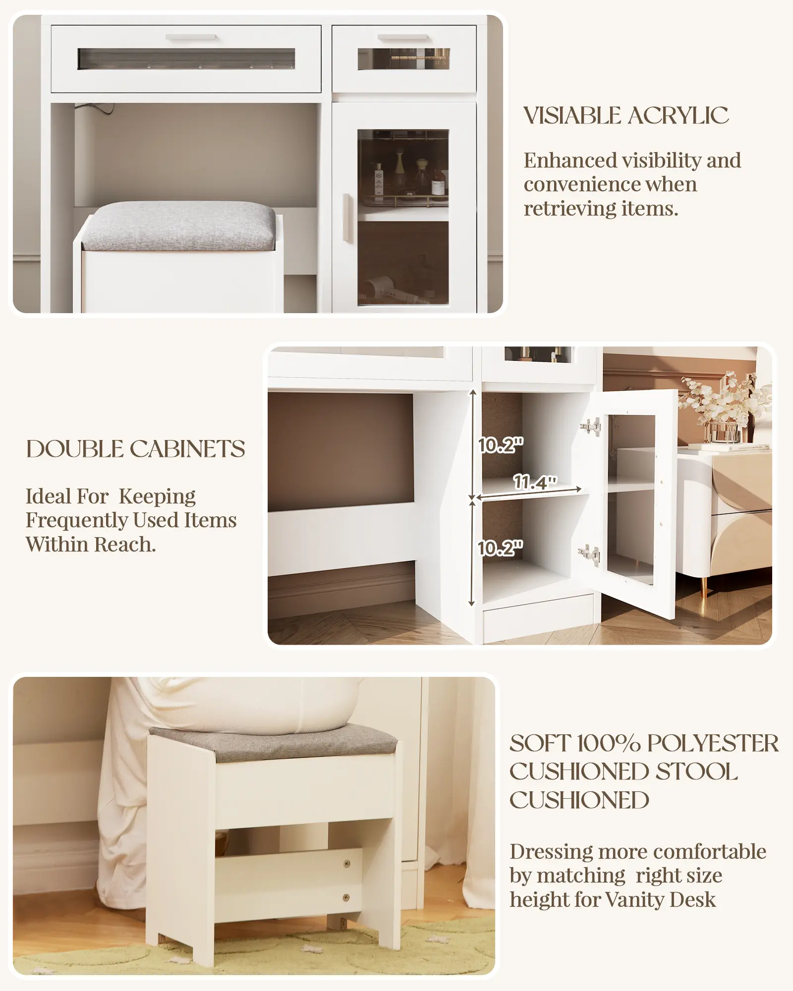 ·Ample Storage: The vanity includes 4 soft fabric bins, 3 shelves, and a large cabinet, providing ample storage for all your cosmetics, skincare products, jewelry, hair straighteners, and hair dryers.