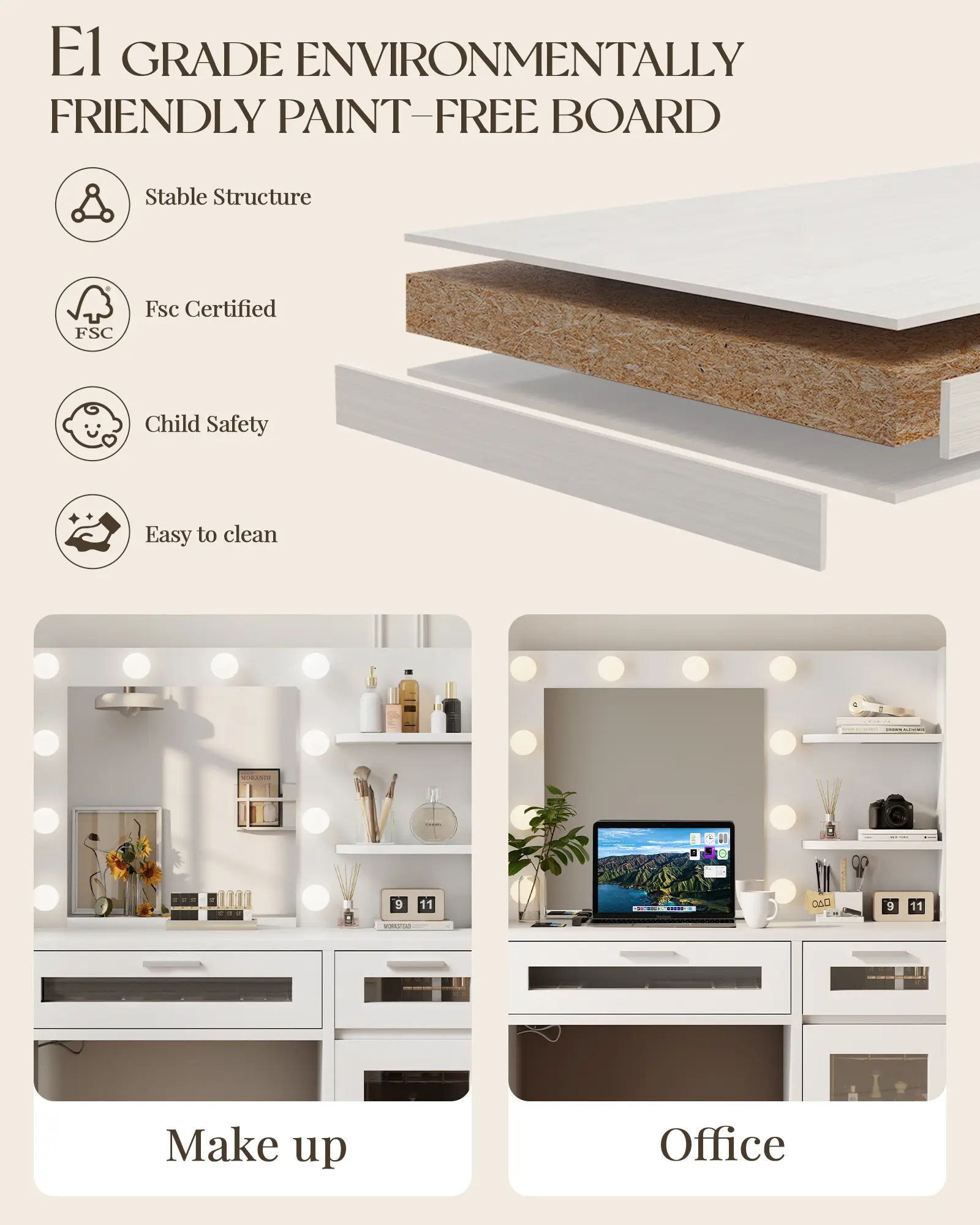 ·Maintenance-Free Beauty: This vanity is virtually maintenance-free, waterproof, and designed to keep your beauty routine organized. Simply wipe away dust and stains to maintain the vanity's beauty and hygiene, allowing you to focus on your beauty routine.