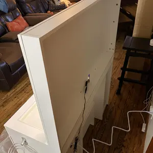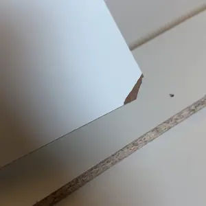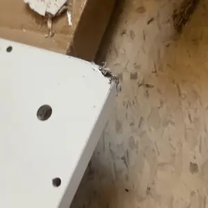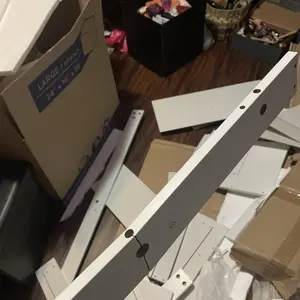 The material looks really bad, and the white paint job is poorly done. The edges are damaged, and once assembled, it doesn’t feel sturdy at all. The pieces come apart easily when you lift it. Plus, the light doesn’t have much power. Definitely not worth it.