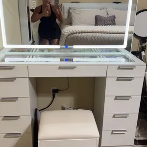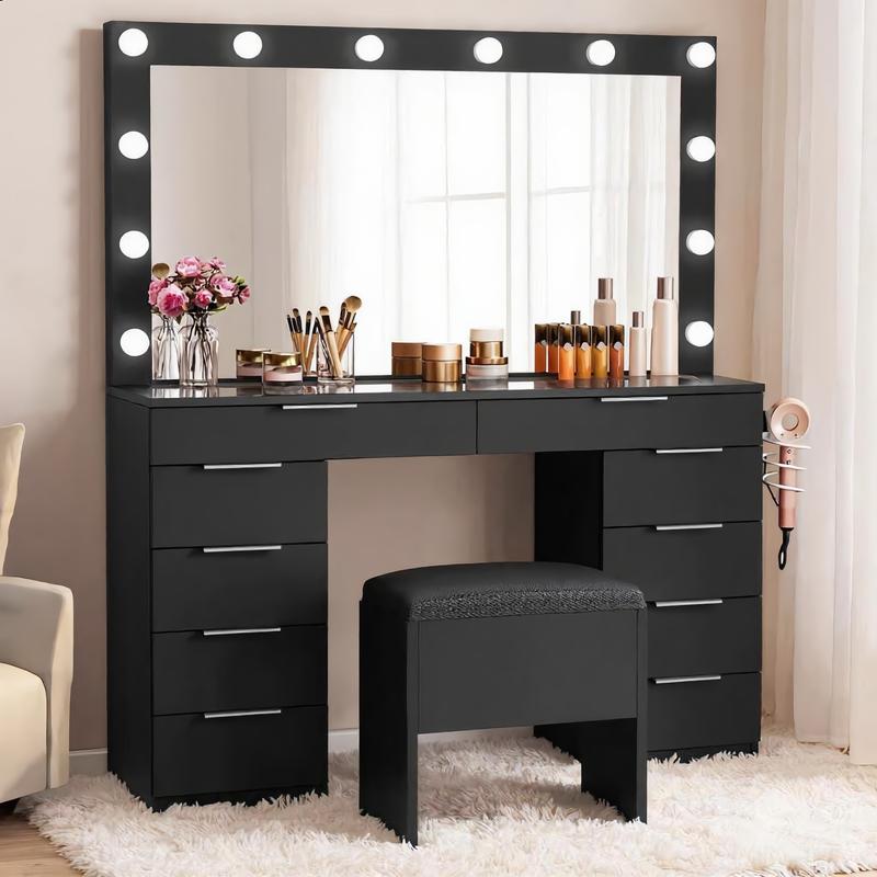 EXCEPTIONAL CUSTOMER SERVICE! The mirror was damaged in the first shipment, I reached out to CS, they sent me an entire new vanity! I 🖤, it is amazing quality, fits everything and then some! Also the stool has storage 👌🏼my daughter is also thrilled to have the broken mirrored one! It’s gorgeous