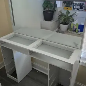 Took a long time to put it together. The instructions are easy to follow. Some of the screws are really hard to put. My magnifying mirror is super tiny. There are two listing for this same vanity two prices. Affiliates demo 3 drawer vanity [lg] but link this one. Misleading.