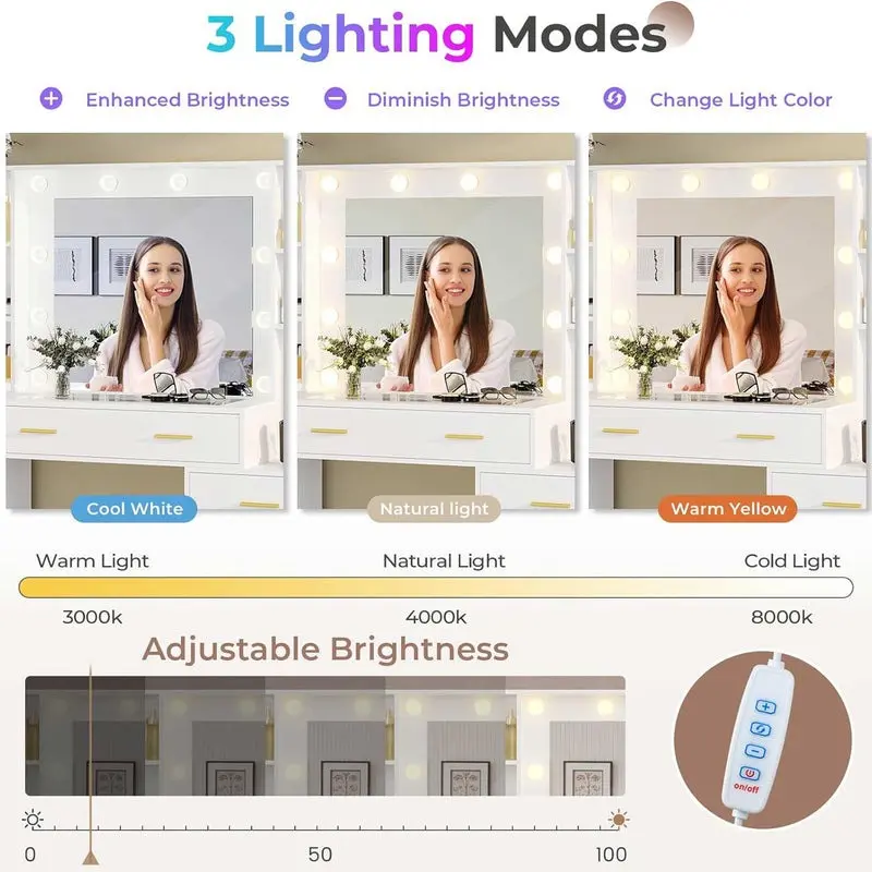 ·Tabletop: Spacious for makeup items.