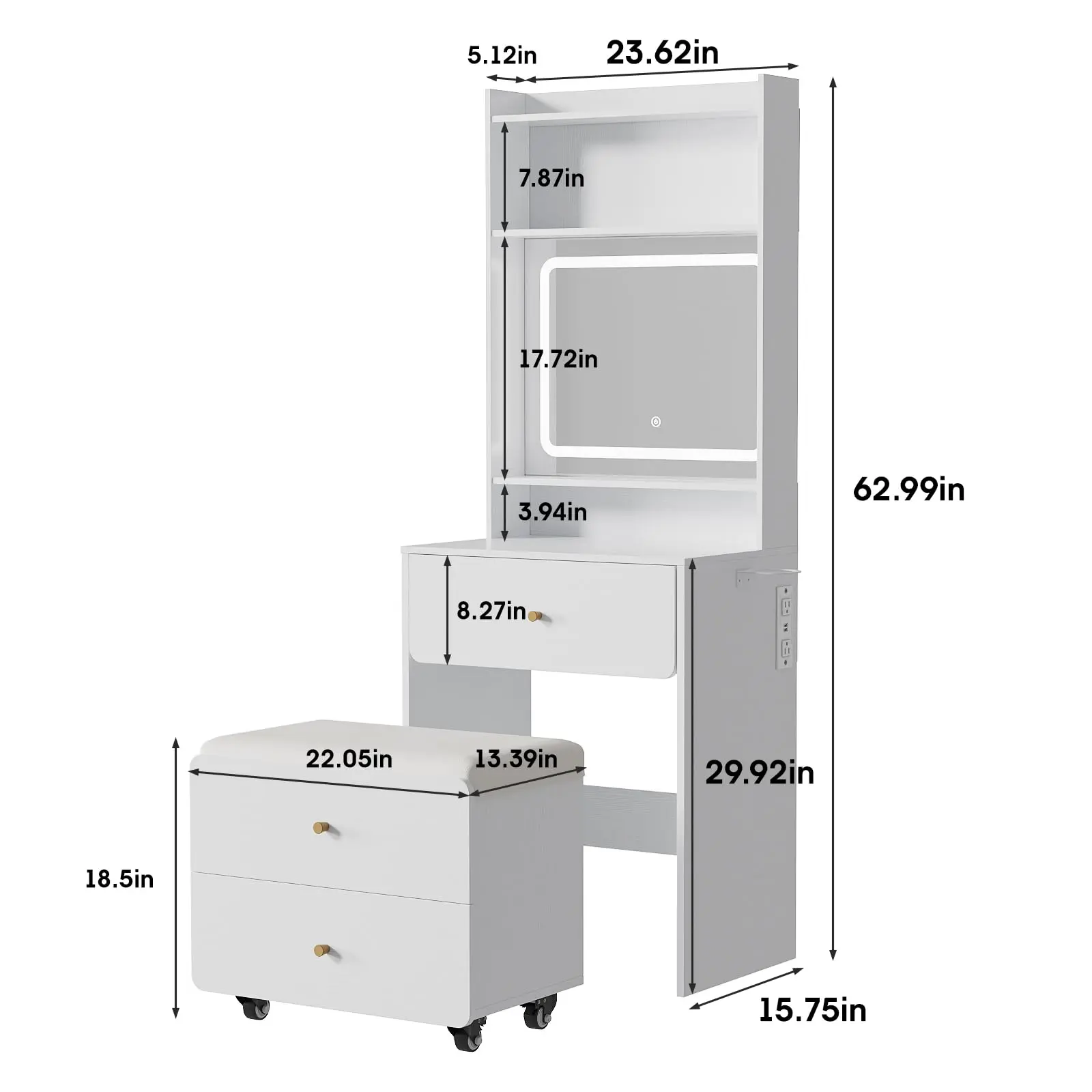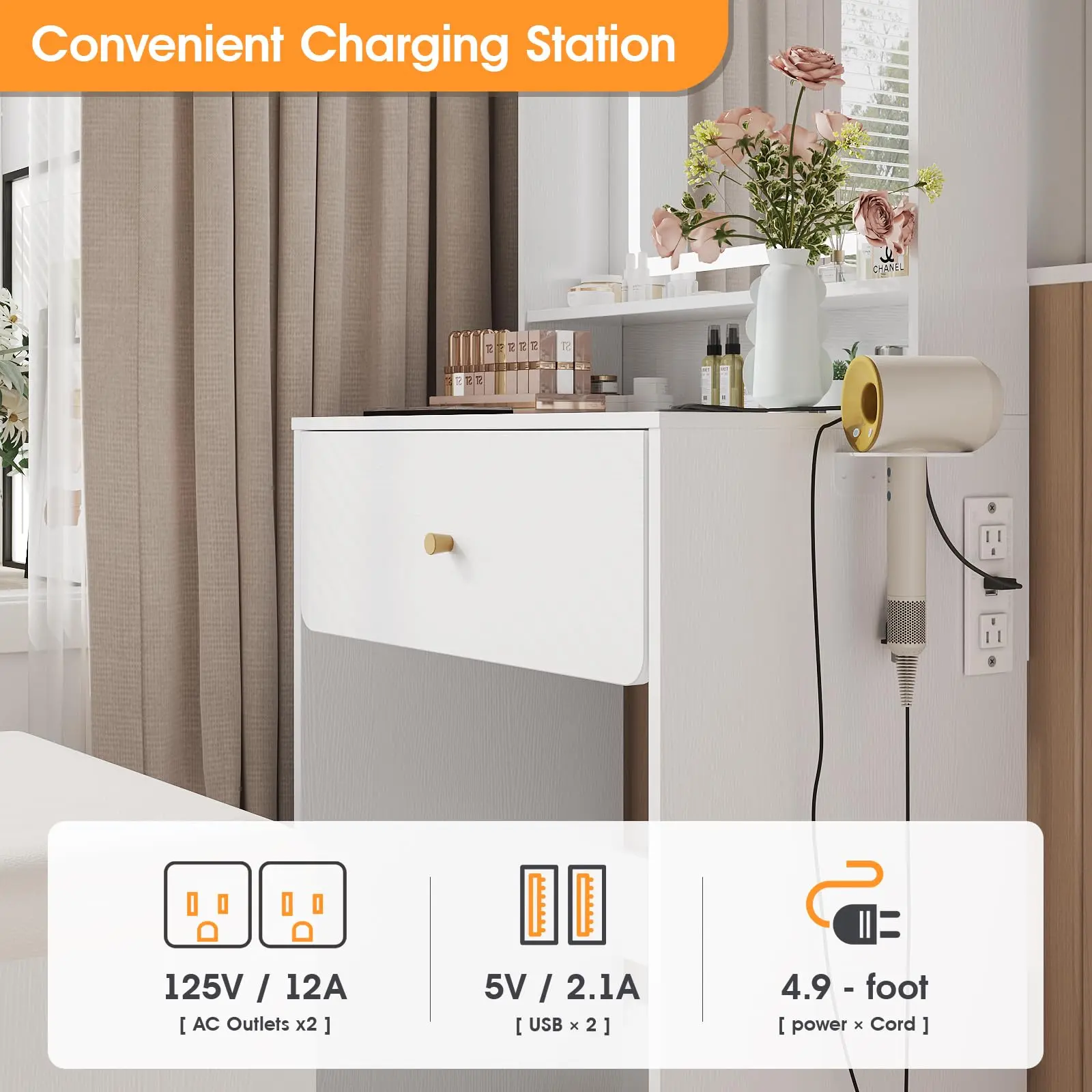【Vanity Desk with Charging Station】This modern vanity desk comes with a power strip that includes 2 standard plug sockets and 3 USB ports, allowing you to sit at your vanity and use your hair dryer or curling iron within easy reach and charge your phone, tablet, or other electronics