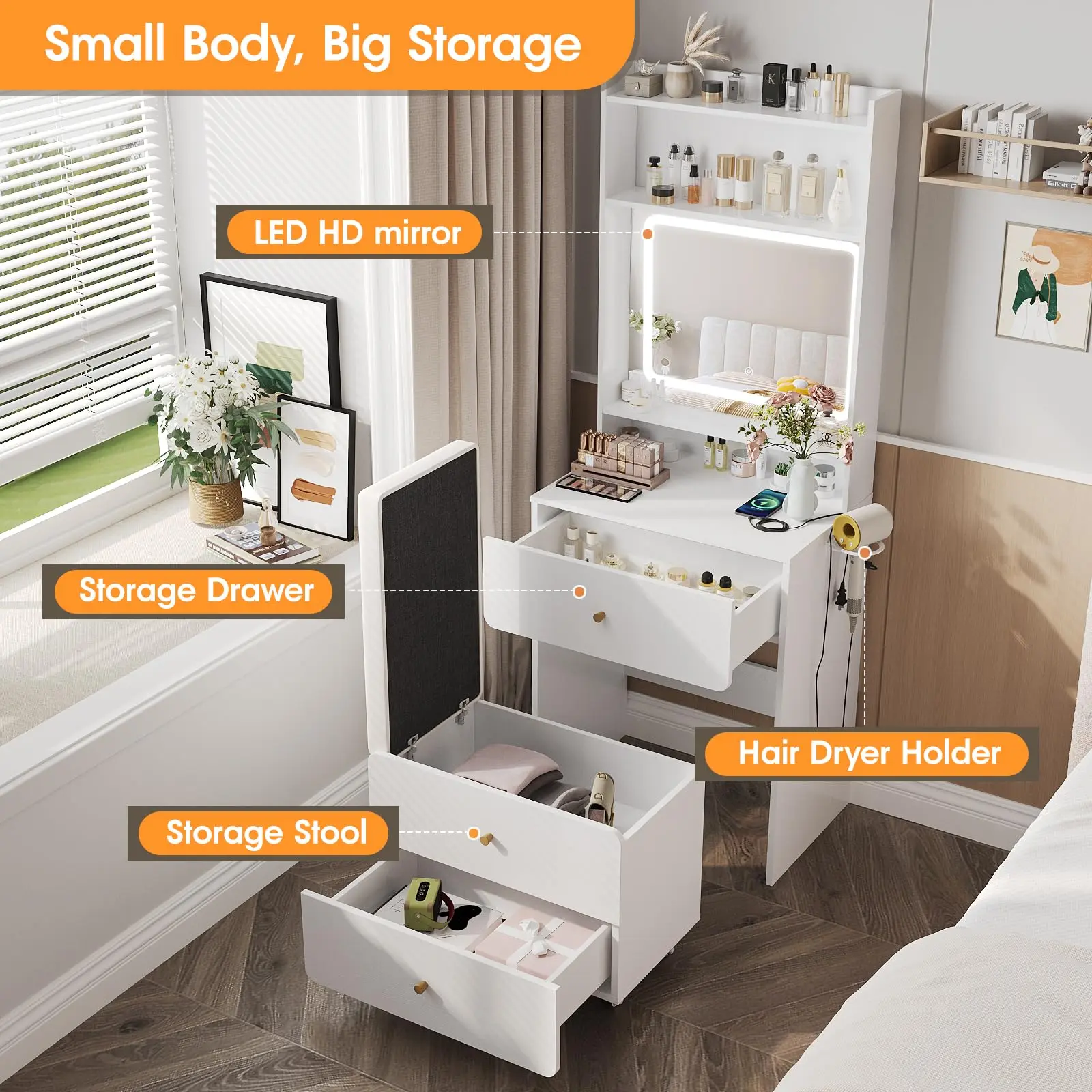 【Small but Large Capacity】This makeup table has a large drawer and a spacious top with shelves above it, providing plenty of storage space and allowing you to easily reach everything you need