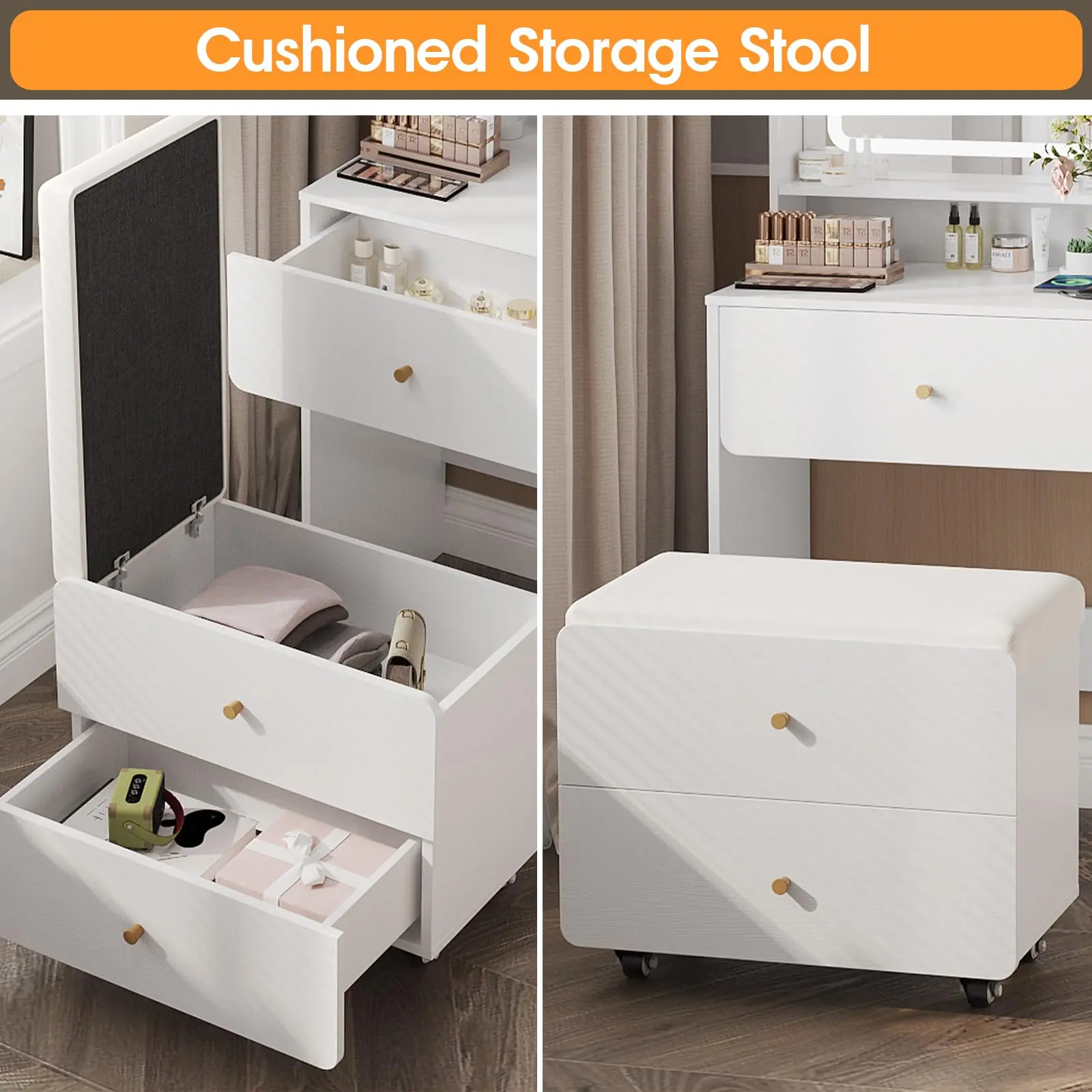 【Vanity Chair】Proper height and a soft cushioned seat will ease your fatigue and give you a more comfortable makeup experience. This vanity stool can be placed completely under the table without taking up extra space for the makeup room