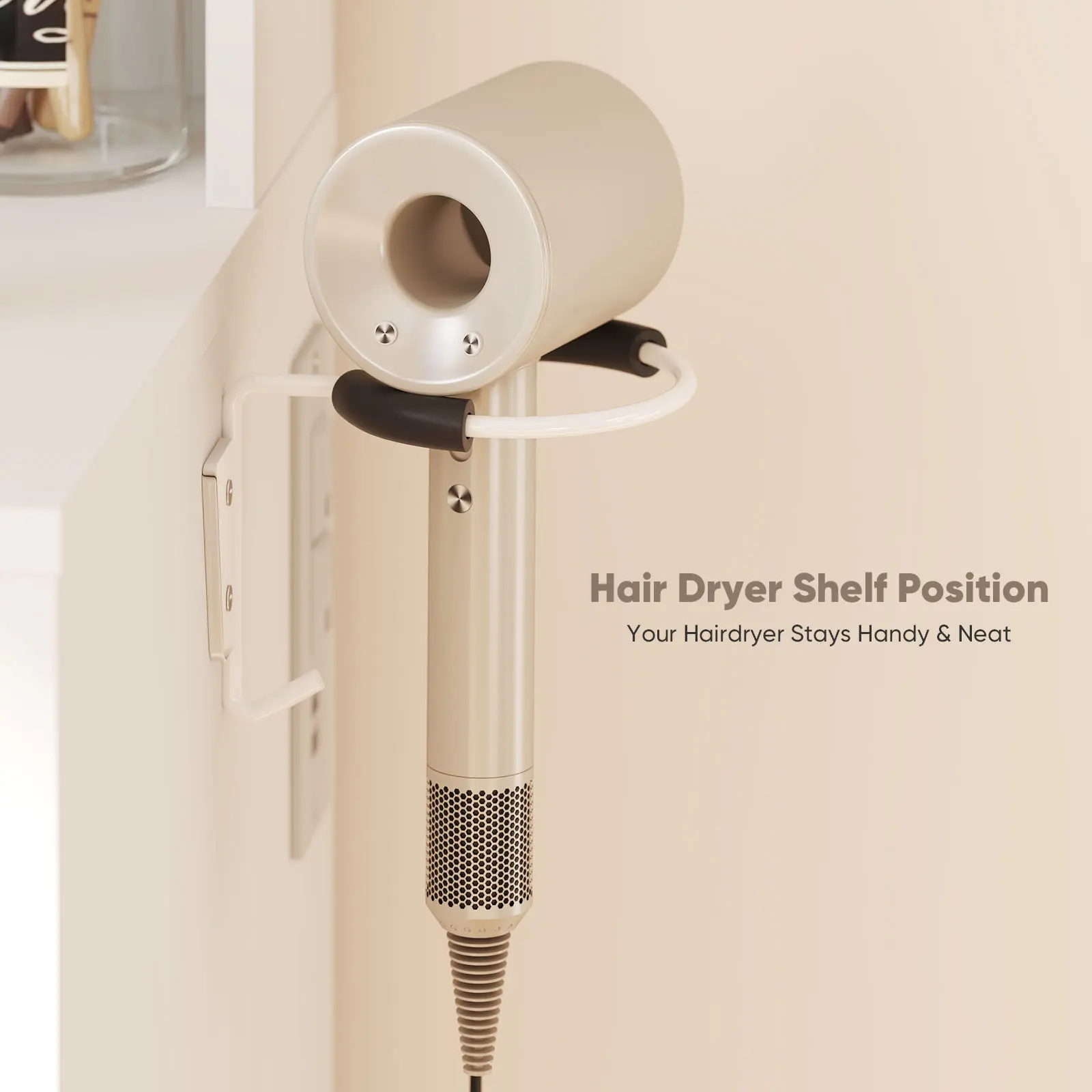 ·Intimate Design: The hairdryer holder is located above the dressing table, making it convenient for you to quickly retrieve and store the hairdryer. At the same time, it can prevent the hairdryer cord from tangling with other items, making the entire grooming process smoother and more convenient.