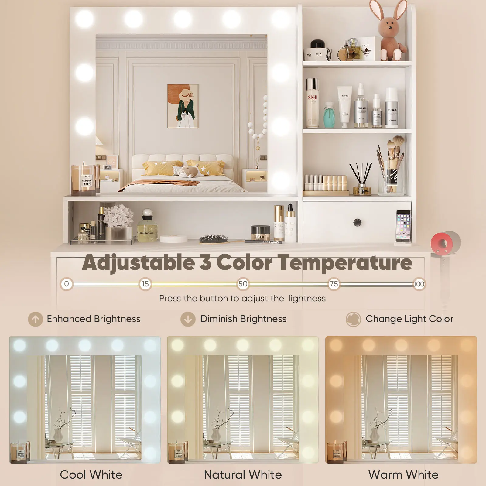 Vanity Desk with Adjustable Lighten Mirror & Power Outlet, Makeup Desk for Bedroom with a Storage Stool and 3 Drawers, 6 Storage Shelves, White Dresser for GirlsVanity Desk with Adjustable Lighten Mirror & Power Outlet, Makeup Desk for Bedroom with a Storage Stool and 3 Drawers, 6 Storage Shelves, White Dresser for GirlsVanity Desk with Adjustable Lighten Mirror & Power Outlet, Makeup Desk for Bedroom with a Storage Stool and 3 Drawers, 6 Storage Shelves, White Dresser for GirlsVanity Desk with Adjustable Lighten Mirror & Power Outlet, Makeup Desk for Bedroom with a Storage Stool and 3 Drawers, 6 Storage Shelves, White Dresser for GirlsVanity Desk with Adjustable Lighten Mirror & Power Outlet, Makeup Desk for Bedroom with a Storage Stool and 3 Drawers, 6 Storage Shelves, White Dresser for Girls