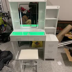 Hermoso mi vanity y muy buena calidad, con hermoso dinseño y fácil para el montaje de sus partes solo seguir los pasos en el manual y queda perfecto. Sus luces son hermosas porque puedes ponerlas de tu color favorito o cambiarlas al gusto según el día. Te ahorras mucho espacio cuando ocupas este tipo de mueblería para tus productos de belleza y comodidad a la hora de maquillarte o darle uso a tu cremas. Es execelente. No solo compré para mi, incluso compré otro para mi niña de 13 años, ella está súper feliz.