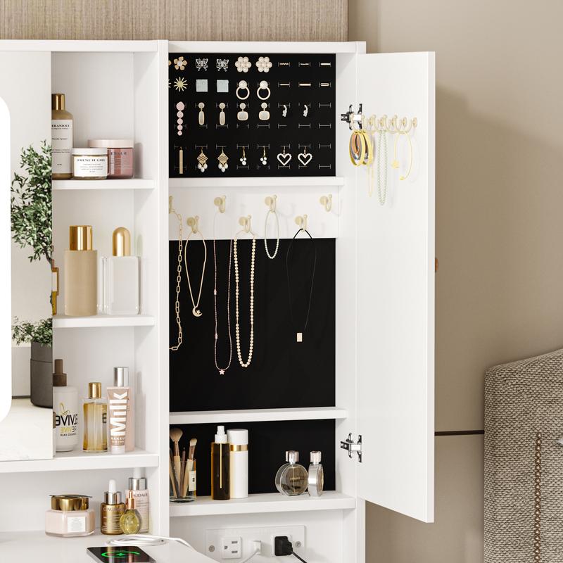 ·Functional 2-in-1 Design. Super Large Capacity, this make up vanity is a perfect combination of vanity and jewelry armoire.
