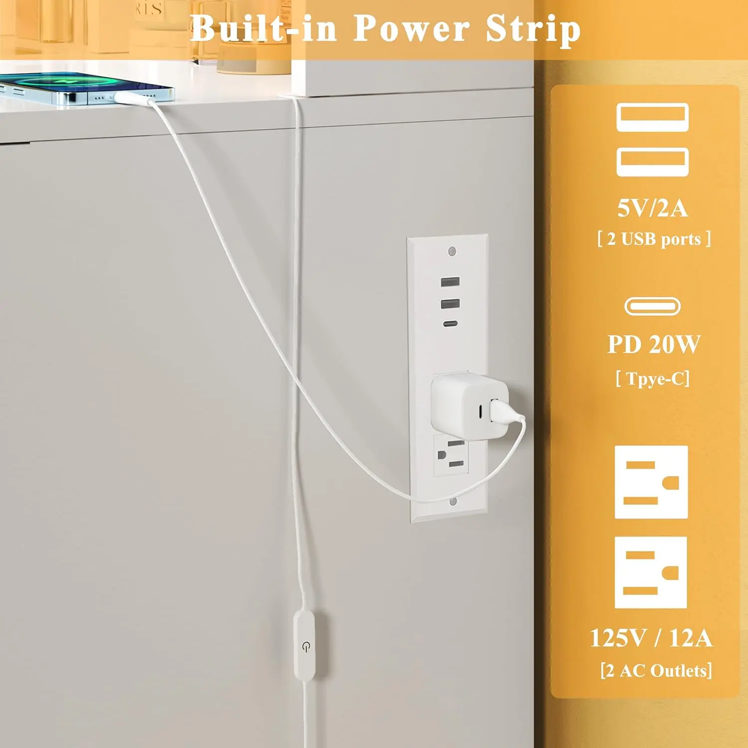 ·Vanity Set with Charging Station: This glass top vanity set is equipped with 2 AC & 2 USB power outlets & 1 Type-C, making it easy to use hair dryers, curling irons or charge mobile devices at the same time and doesn't need to find another power outlet when you doing makeup.