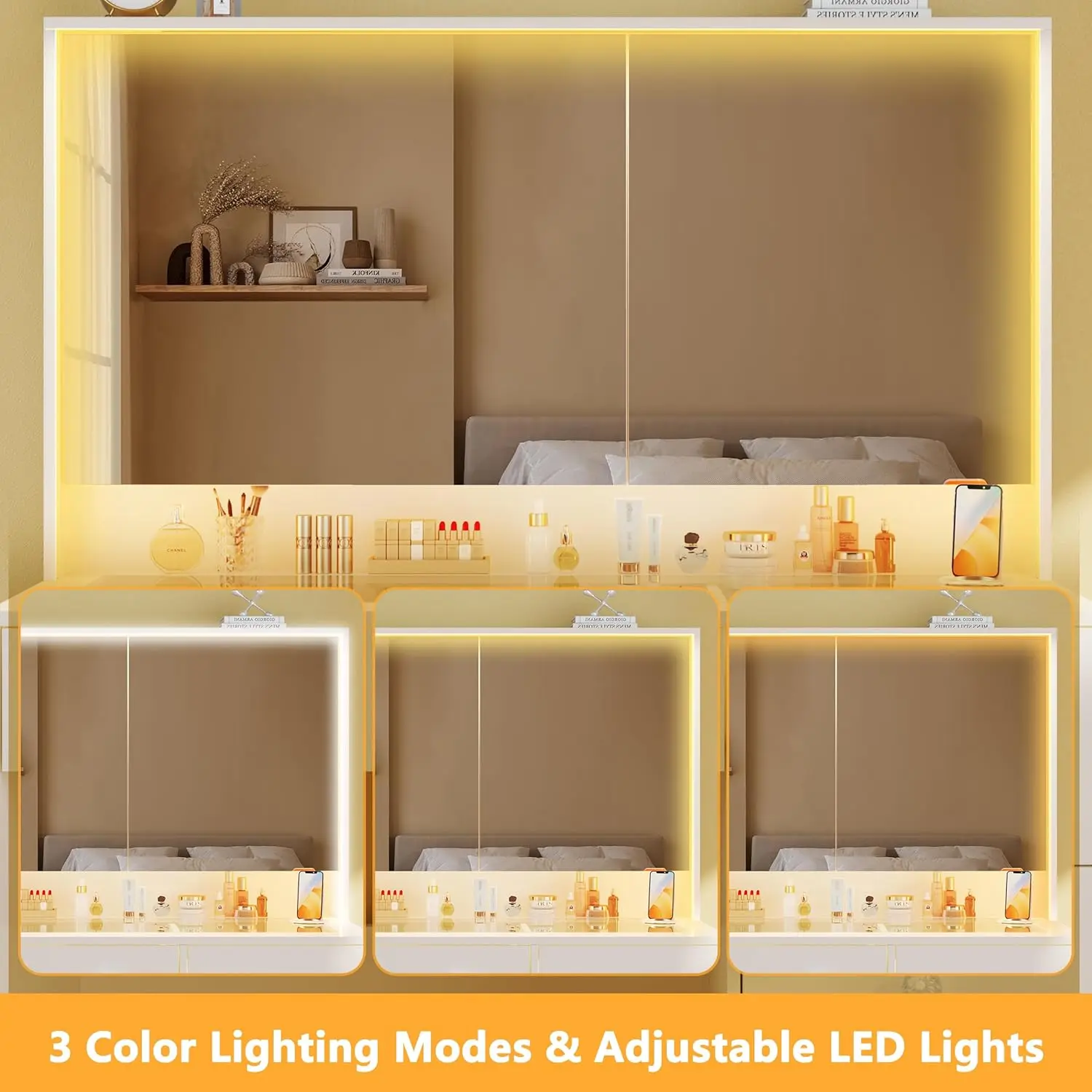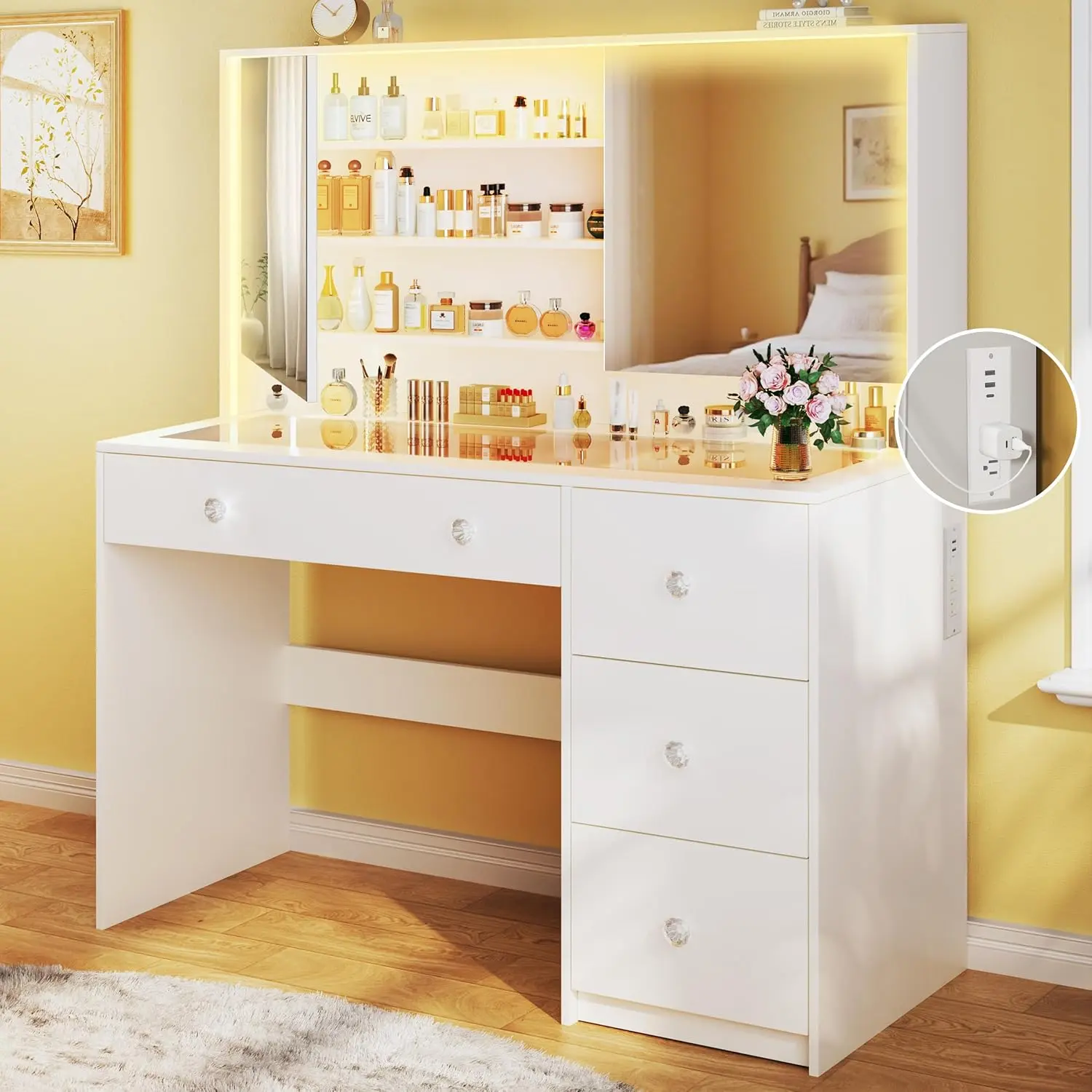 ![[ChristmasGifts] Vanity Desk with Mirror and Lights, Makeup Vanity with Glass Top & Power Outlet, White Vanity with 4 Drawers & 3 Long Hidden Storage Shelves, 3 LED Lighting Modes Adjustable for Bedroom [ChristmasGifts] Vanity Desk with Mirror and Lights, Makeup Vanity with Glass Top & Power Outlet, White Vanity with 4 Drawers & 3 Long Hidden Storage Shelves, 3 LED Lighting Modes Adjustable for Bedroom](https://p19-oec-general.ttcdn-us.com/tos-alisg-i-aphluv4xwc-sg/2fb61bfc4cd24aaba9ab1b1527931a01~tplv-fhlh96nyum-origin-jpeg.jpeg?dr=12178&t=555f072d&ps=933b5bde&shp=a3510d86&shcp=6ce186a1&idc=useast5&from=2739998086)