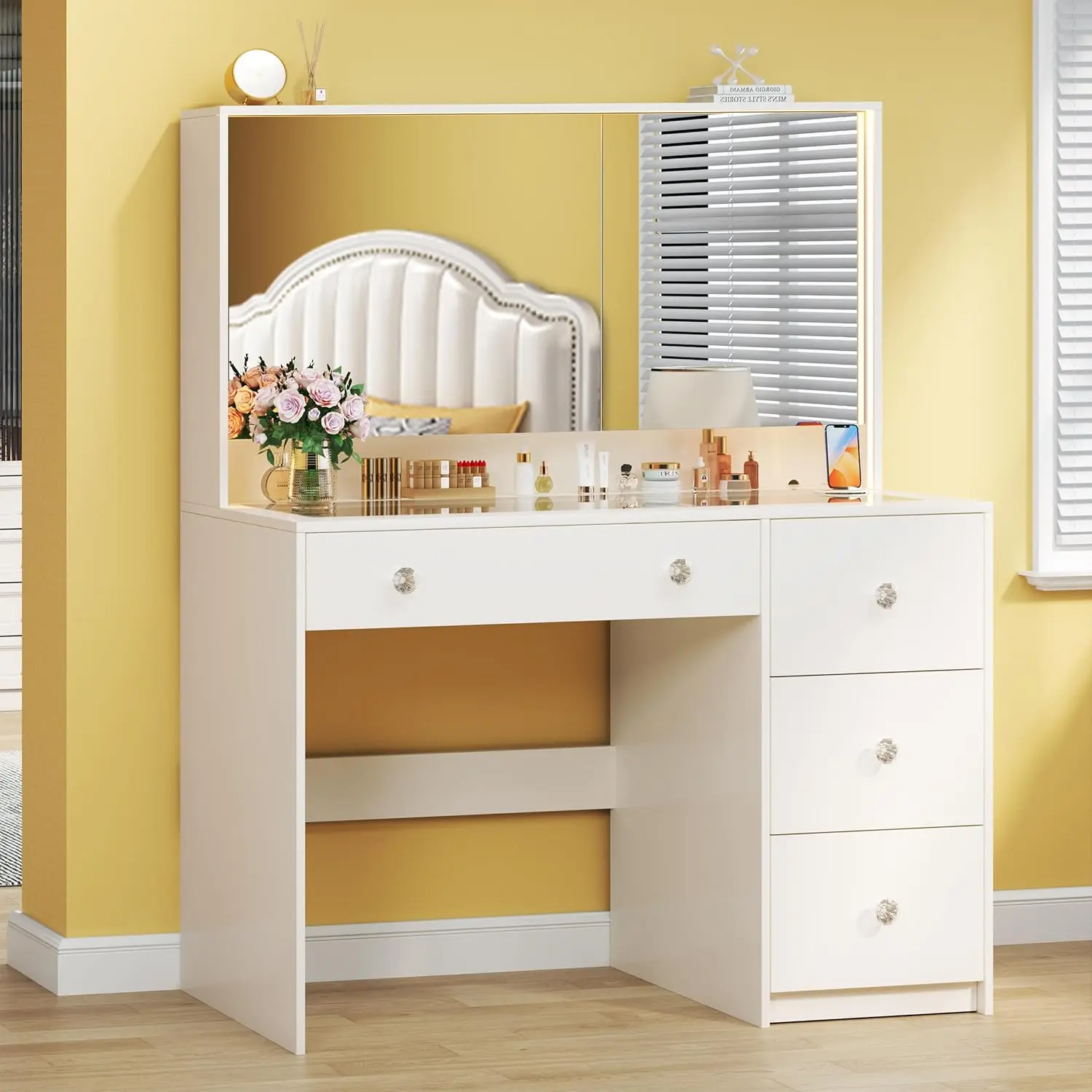 ![[ChristmasGifts] Vanity Desk with Mirror and Lights, Makeup Vanity with Glass Top & Power Outlet, White Vanity with 4 Drawers & 3 Long Hidden Storage Shelves, 3 LED Lighting Modes Adjustable for Bedroom [ChristmasGifts] Vanity Desk with Mirror and Lights, Makeup Vanity with Glass Top & Power Outlet, White Vanity with 4 Drawers & 3 Long Hidden Storage Shelves, 3 LED Lighting Modes Adjustable for Bedroom](https://p19-oec-general.ttcdn-us.com/tos-alisg-i-aphluv4xwc-sg/3e21dc0ae4eb452f93ee35f7e6c61900~tplv-fhlh96nyum-origin-jpeg.jpeg?dr=12178&t=555f072d&ps=933b5bde&shp=a3510d86&shcp=6ce186a1&idc=useast5&from=2739998086)