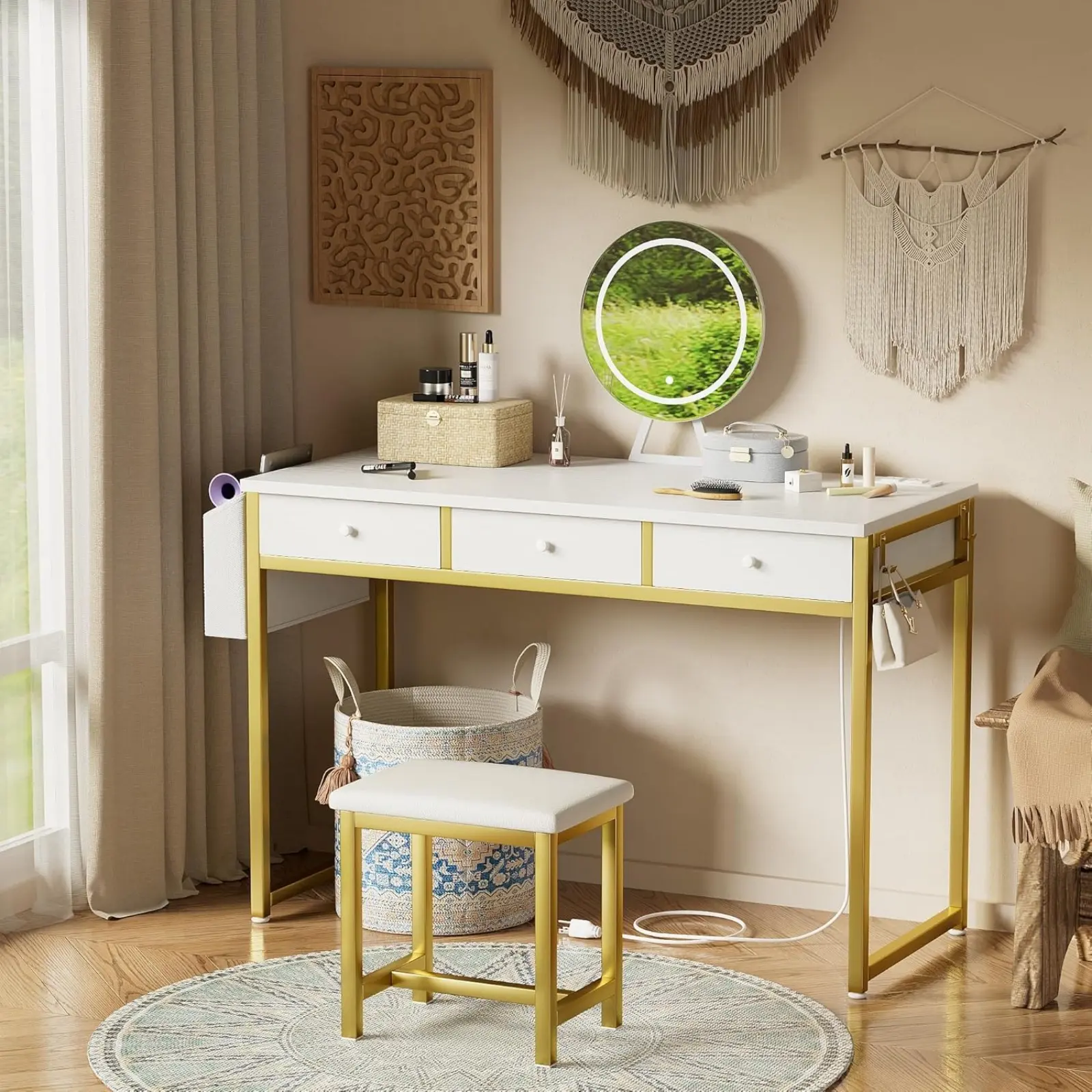 Clutter-Free Organization: Keeping your space tidy with three spacious fabric drawers, a large side pocket, and two hooks provide ample room for makeup, accessories, and electronics. No more scrambling for your essentials—everything is organized and easy to find