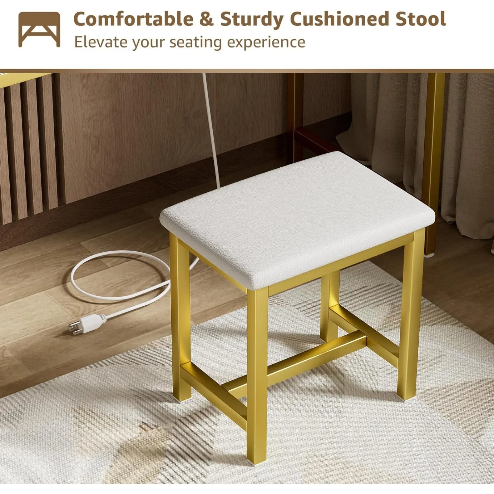 Ultimate Comfort and Style: Long makeup sessions or workdays can strain your back and posture. Our thick-sponged PU padded stool provides cozy support, ensuring you're comfortable whether you're getting ready or working from home. Plus, its sleek, modern design adds a stylish touch to your space