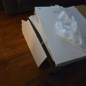 Multiple boards were damaged and drawers do not slide easily