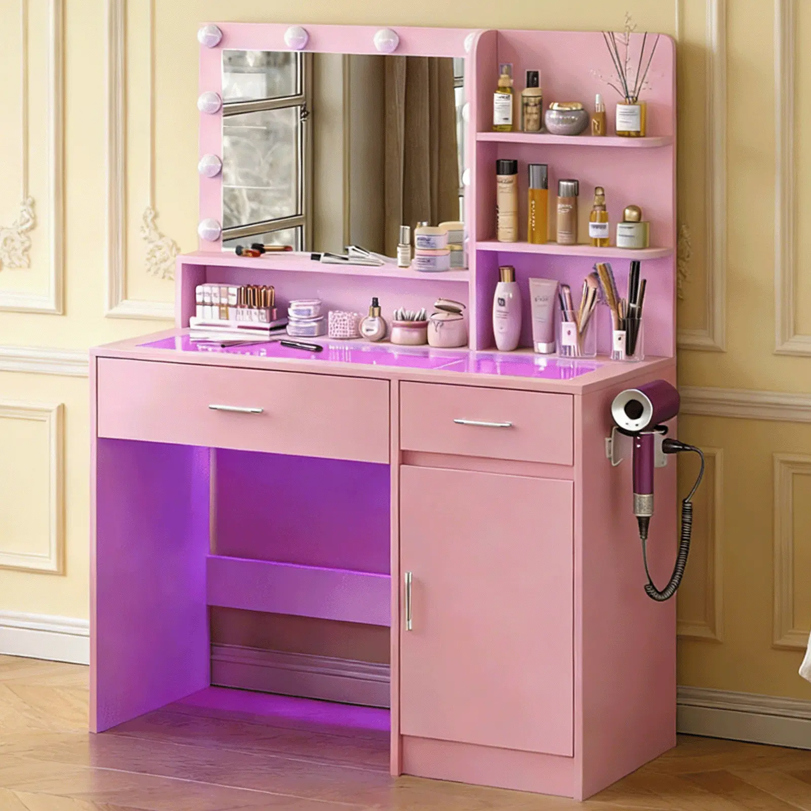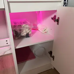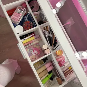 This is my first vanity ever as a 27 yr old. I love it so much!! It has tons of space and you can adjust the led lighting through an app if you don’t want to use the led lighting already provided. instructions were sorta simple building it on my own. super cute doesn’t take much space too 🩷
