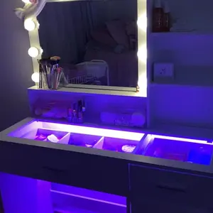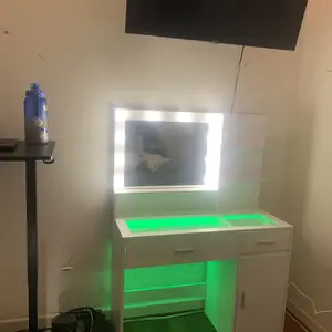 this vanity is really nice there many different color options for the LEDs it makes my room look 100x better my old vanity was way smaller and super basic for almost at $300 this price is very reasonable.