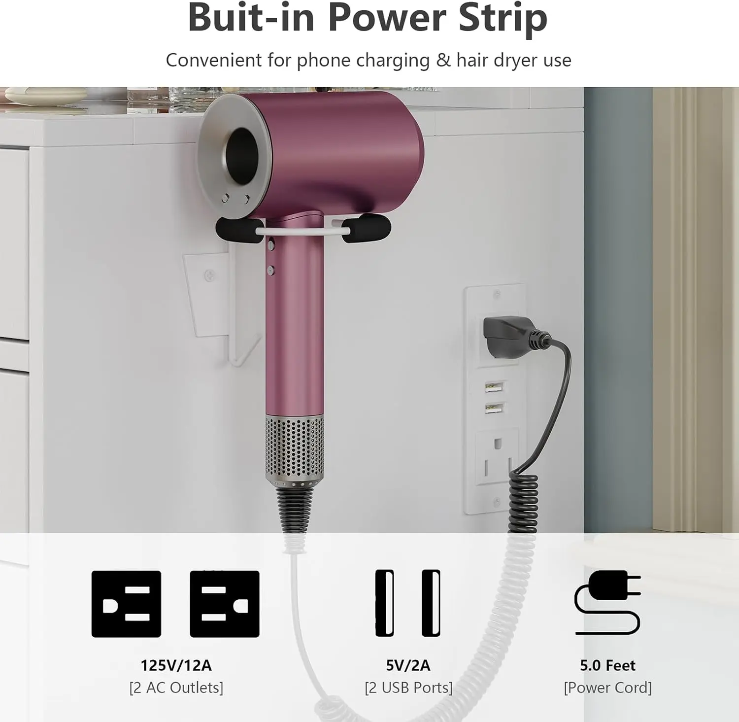 This vanity is equipped with a charging station and hair dryer holder, including 2 standard plug sockets and 2 USB ports. Effortlessly connect your hair dryers, curling irons, and charge your devices like phones and tablets, ensuring you're always ready to capture stunning selfies after your beauty routine