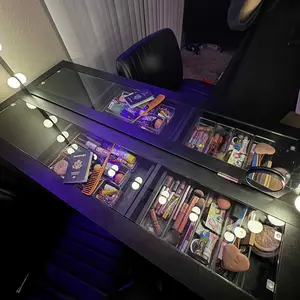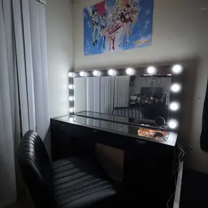 3 Lighting Modes & Brightness Adjustable: The vanity desk is equipped with an HD mirror and 13 bright Hollywood plastic bulbs, provides 3 color modes (warm/natural/cool) and adjustable brightness, this makeup vanity can meet all your different needs, perfect for home makeup, salon, and live broadcast, so you can experience the star-like makeup treatment