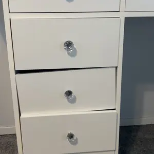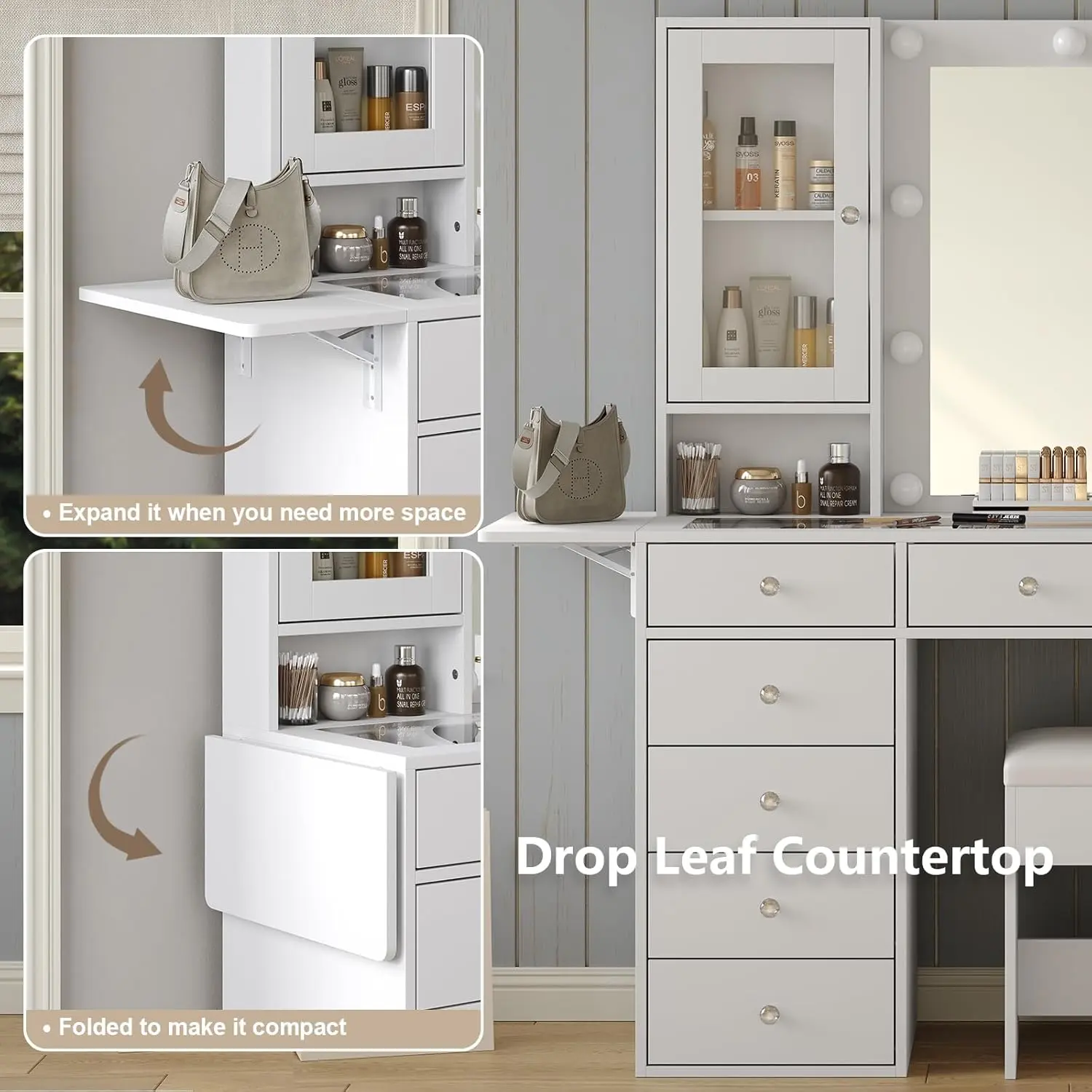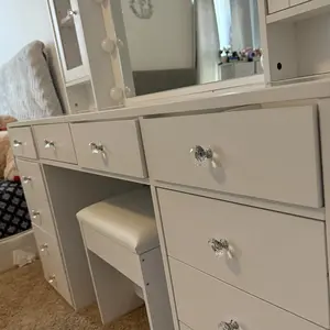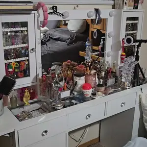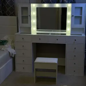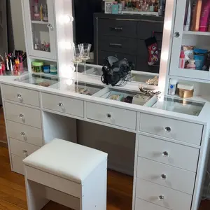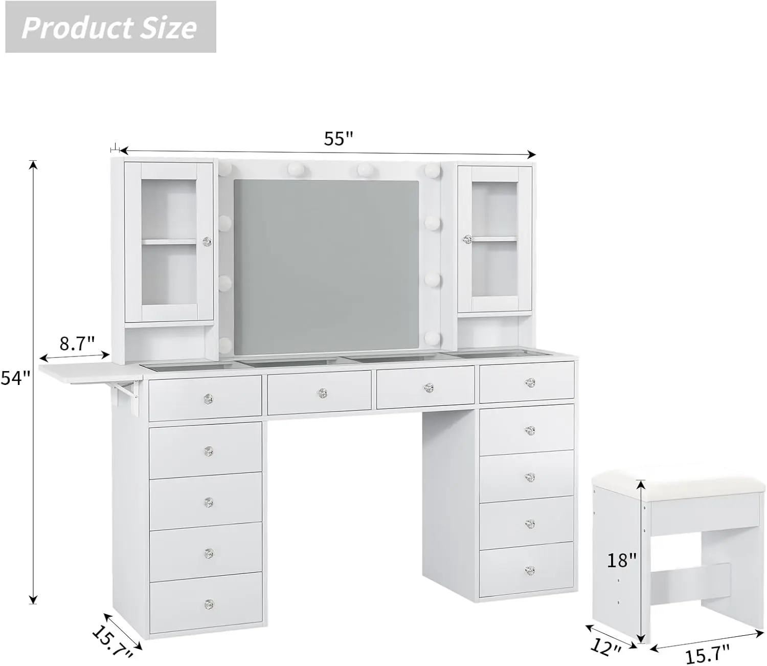 Great Storage Capacity: Are you still worried about a lot of cosmetics? The vanity desk does it all! 12 large makeup metal sliding drawers and 2 storage cabinets make your makeup environment well-organized. It can hold all your cosmetics perfectly! The bigger surprise is, this vanity table can make your bedroom look very neat and elegant.
